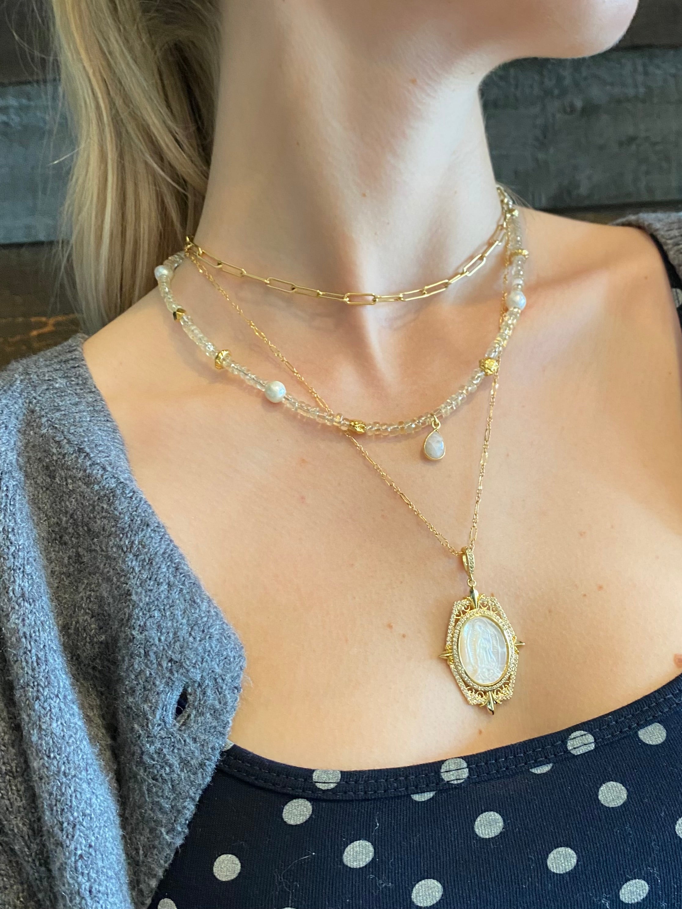 Each natural stone has unique variations in color and pattern, giving every Christine Necklace its own character and charm.