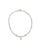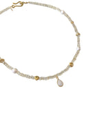 The Christine Necklace is a luminous statement piece that captures the glow of summer. Crafted from 18K gold-filled material and adorned with moonstone, citrine, and freshwater pearls, this 18-inch necklace radiates warmth and individuality. Its blend of soft shimmer and vibrant color makes it the perfect finishing touch for sunlit days and golden evenings.