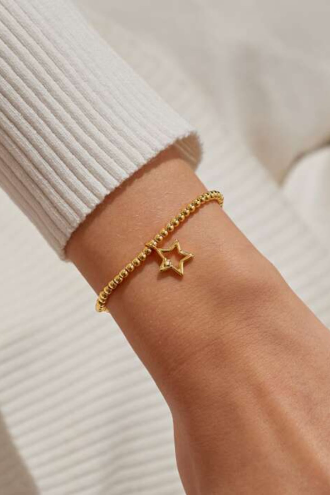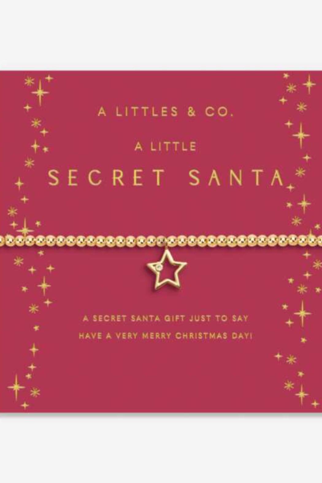 Capture every magical moment with your loved ones this festive season with our twinkling Christmas A Little Bracelets! Made to last and be loved for a lifetime, our Christmas A Little 'Secret Santa' Bracelet In Gold-Tone Plating is threaded with our classic gold-tone plated beads and decorated with a pretty star charm to celebrate the magic of the season. Wrapped around a shimmering starburst-print card and framed by a sweet poem, it's sure to make a wonderful stocking stuffer or under-the-tree treat.