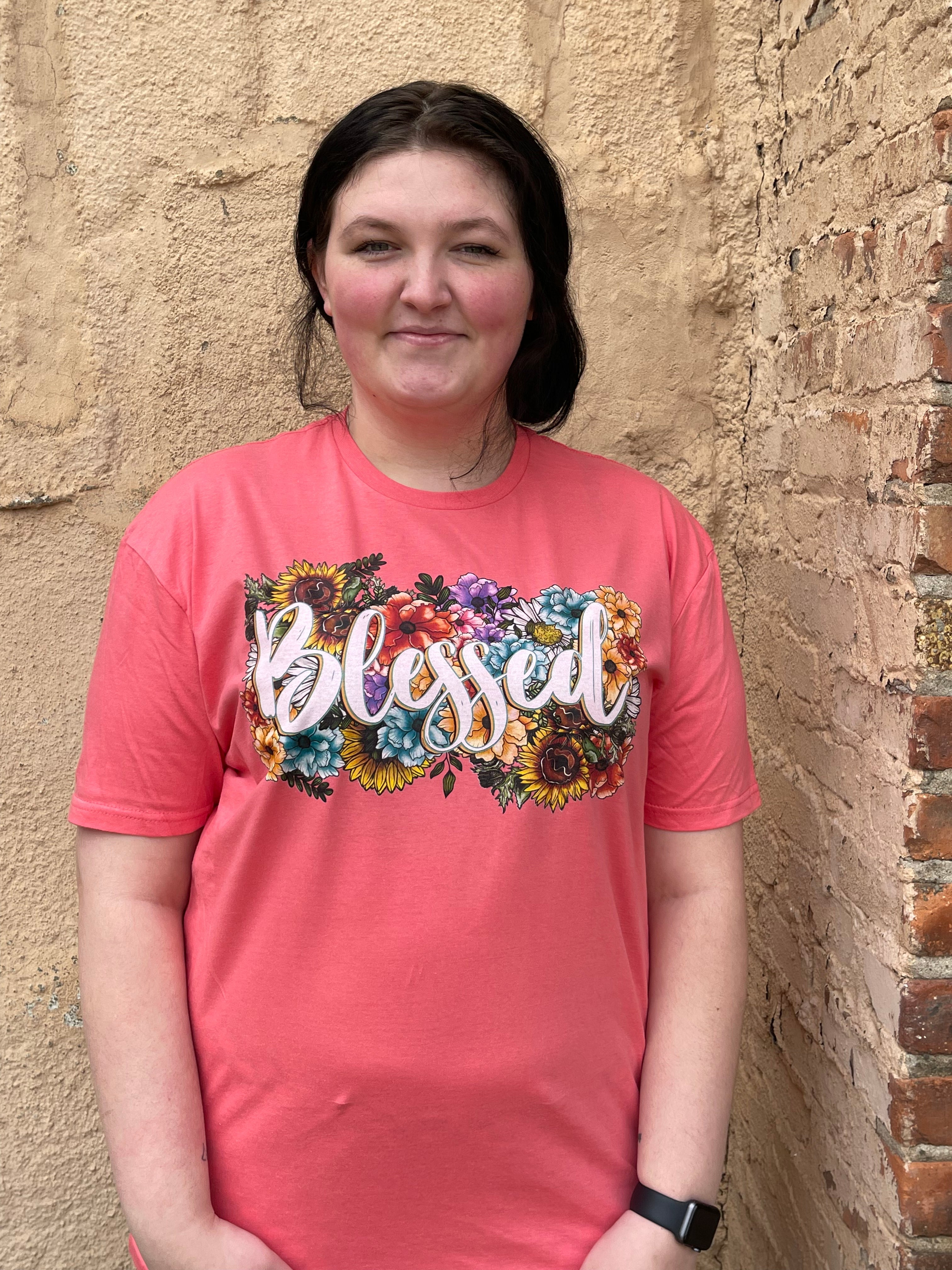 This gorgeous coral t-shirt is the perfect edition to your spring wardrobe! Featuring a stunning bouquet of flowers, you’ll want to wear this one all year long!