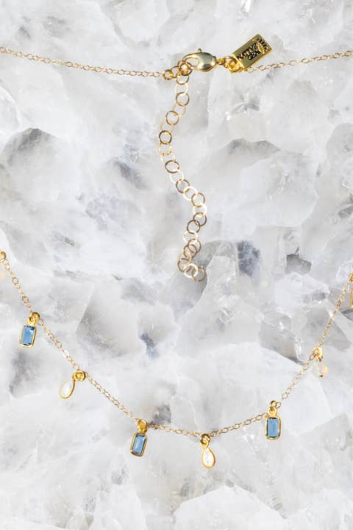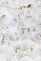 Multi bezel gemstone opal and blue topaz bezel 14K gold vermeil 16" necklace with 2 inch extender.