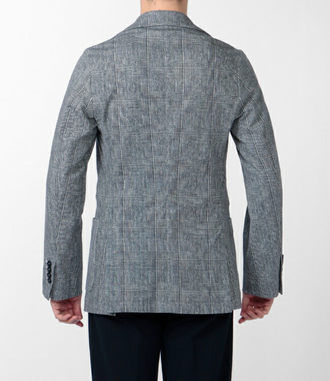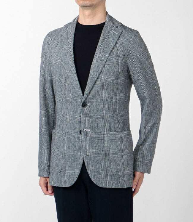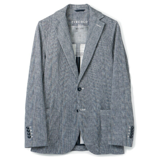 Experience ultimate comfort and style with our Circolo 4-way stretch Navy Checked Jersey Blazer. Made of highly elastic cotton jersey, this blazer provides a comfortable and flexible fit. The soft and smooth surface features a traditional glen plaid pattern, adding a touch of sophistication. With the perfect thickness for year-round wear, this blazer will elevate your wardrobe.