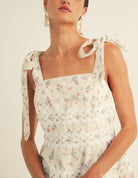 This beautiful dress features a gorgeous lace and floral detail. Pair with your favorite neutral wedge or heel to complete the look. Runs true to size.