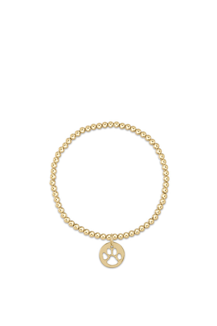 PAWesome. Made with 3mm, 14kt gold-filled beads 14kt gold-filled 12mm paw print disc -Worry-free wear, which means sleep, shower and sweat in it -Measures: standard (6.25") or extends (7.25") -Hand beaded on high performance elastic for a slight stretch to easily roll on and off your wrist -Stacks well with all bracelets