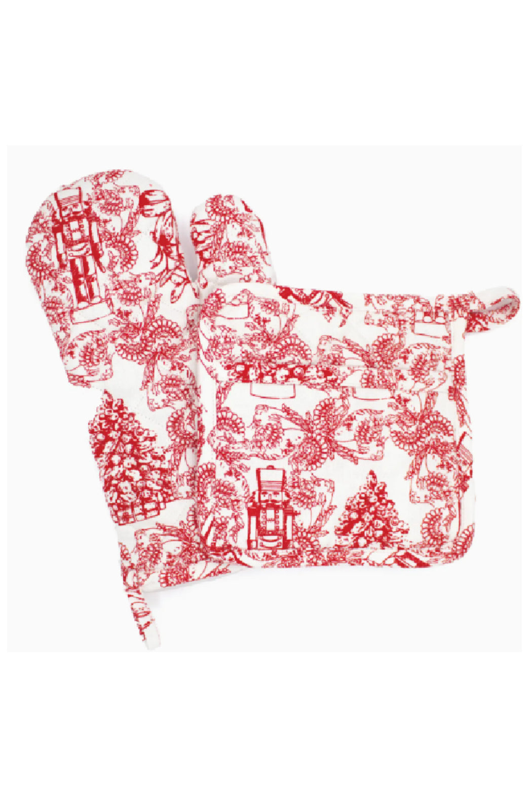 Bring the feeling of festive, yet timeless elegance into your kitchen with our Classic Nutcracker Oven Mitt Set. Get ready to feel stylish while cooking with this set and its signature blue chinoiserie print design – perfect for adding a flair of sophisticated charm to any kitchen. Crafted from 100% cotton, you know you’re getting nothing but the best in quality and comfort. Plus, each mitt and potholder also come complete with a hanging loop for easy storage when not in use! Make sure to pair this beautiful oven mitt set with our Kitchen Towels and Aprons to create a wonderful gift for someone special or just use them as the perfect way to celebrate yourself!