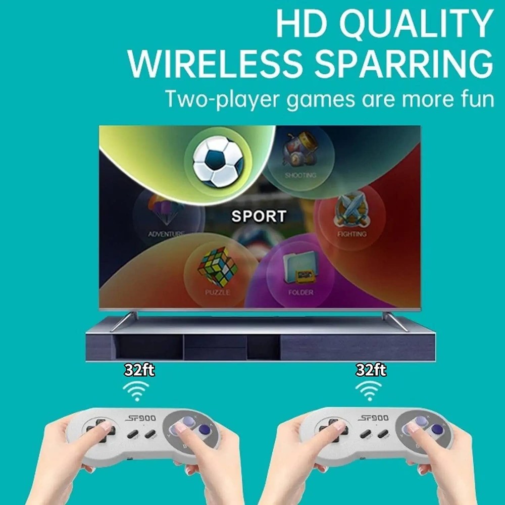 The wireless TV stick game console is suitable for 4K TV,support HDMI/HD connection,1080P high-definition picture quality, so you can plug it into TVs, computer monitors, and projectors with an HD Output interface. It supports 4k output that brings excellent gaming experience, Equipped with 2 wireless handles, plug ‘n’ play tv games, comfortable hand feel, you can better share your fun with family or friends.