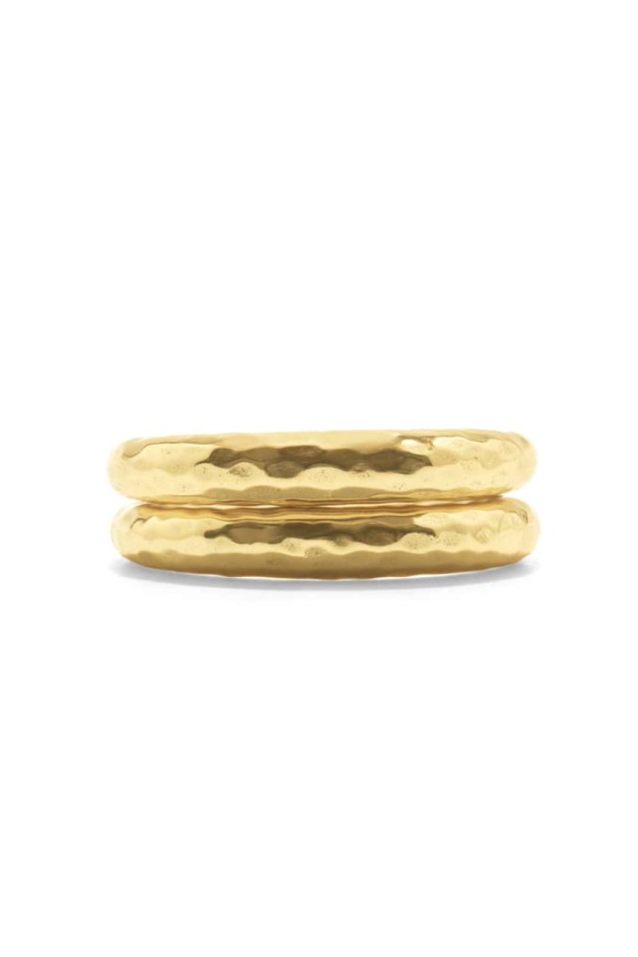 Renowned for her intelligence, influence and beauty - our icon for the ages had it all. And if she taught us anything, it is that more is more, and a striking set of stacking rings in hammered gold is just the thing for queening over every one of life’s many peaks, valleys, and adventures in between. Never boring, mix and match them on various fingers and constantly change their placements to keep things unexpected.