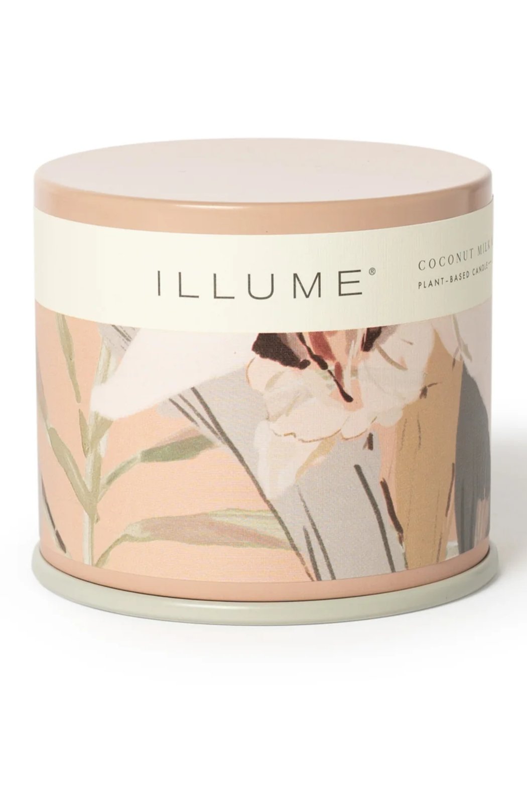 Designed as a pop of pattern, our vanity tins have a full wrap label on textured stock, interior pattern with metallic details, and a color rolled edge to complement the colored wax. We use tin for its lovely illuminating qualities and because it is infinitely recyclable.