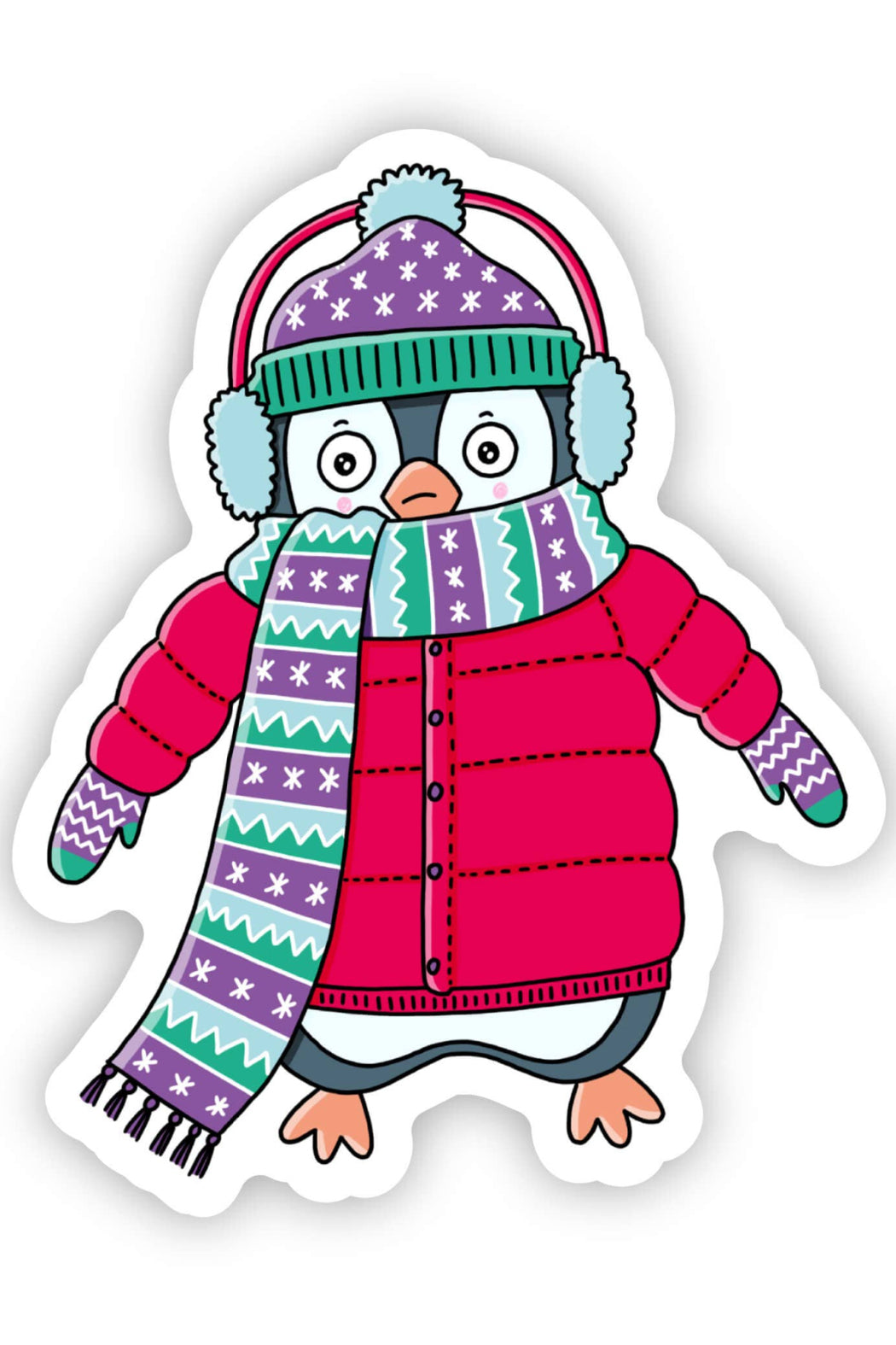 This penguin was tired of being cold so it threw a hat, mittens, a coat, gloves, and ear muffs on. Keep your water bottle warm with this cute sticker. Details:•2.4" x 3.0"• Printed and shipped with care from the U.S.A. • High quality and durable vinyl, indoor and outdoor use• Waterproof and weatherproof We are partnered with ActiveMinds.Org to help spread mental health awareness.