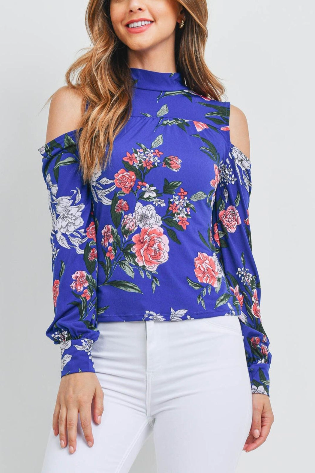 This cold shoulder floral tie back blouse is a stylish and comfortable addition to any wardrobe. Constructed from a blend of 95% polyester and 5% elastane for a soft and flexible fit, this top runs a bit small for a snug yet flattering look. Perfect for any occasion!