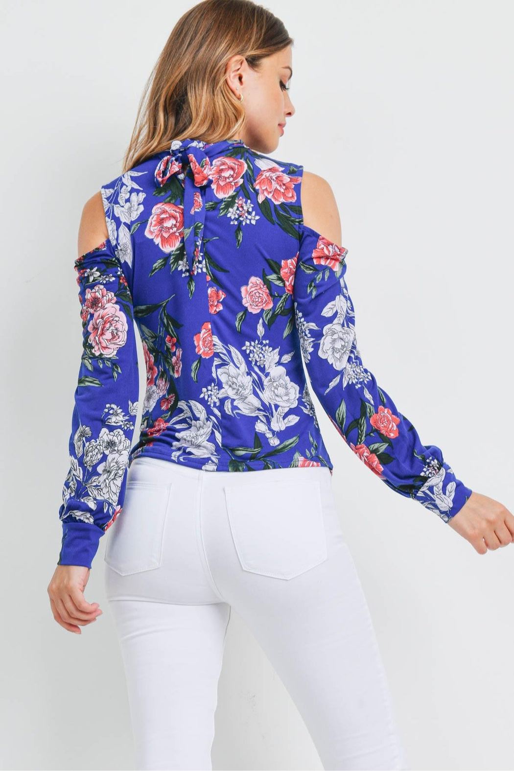 Cold shoulder floral tie back blouse