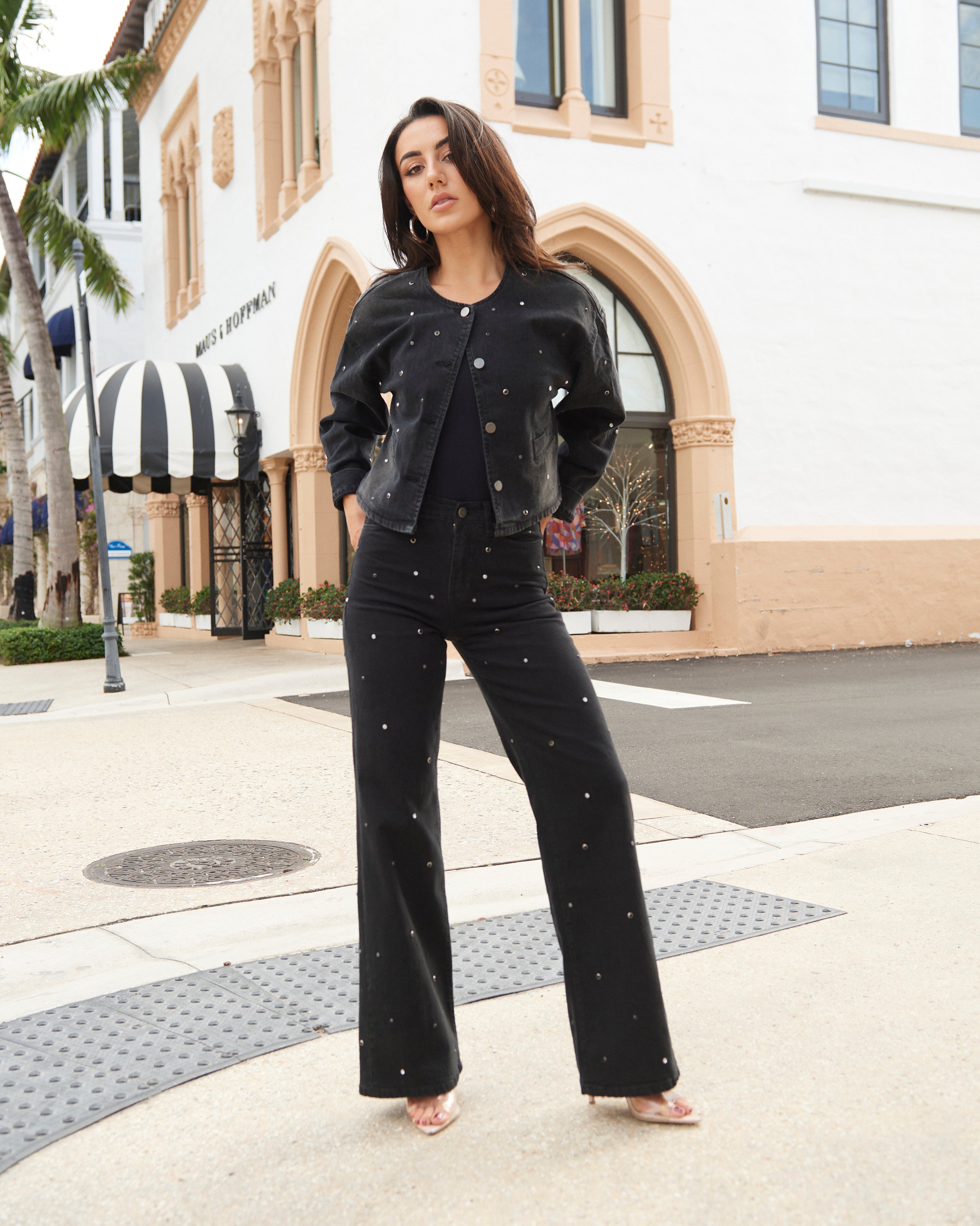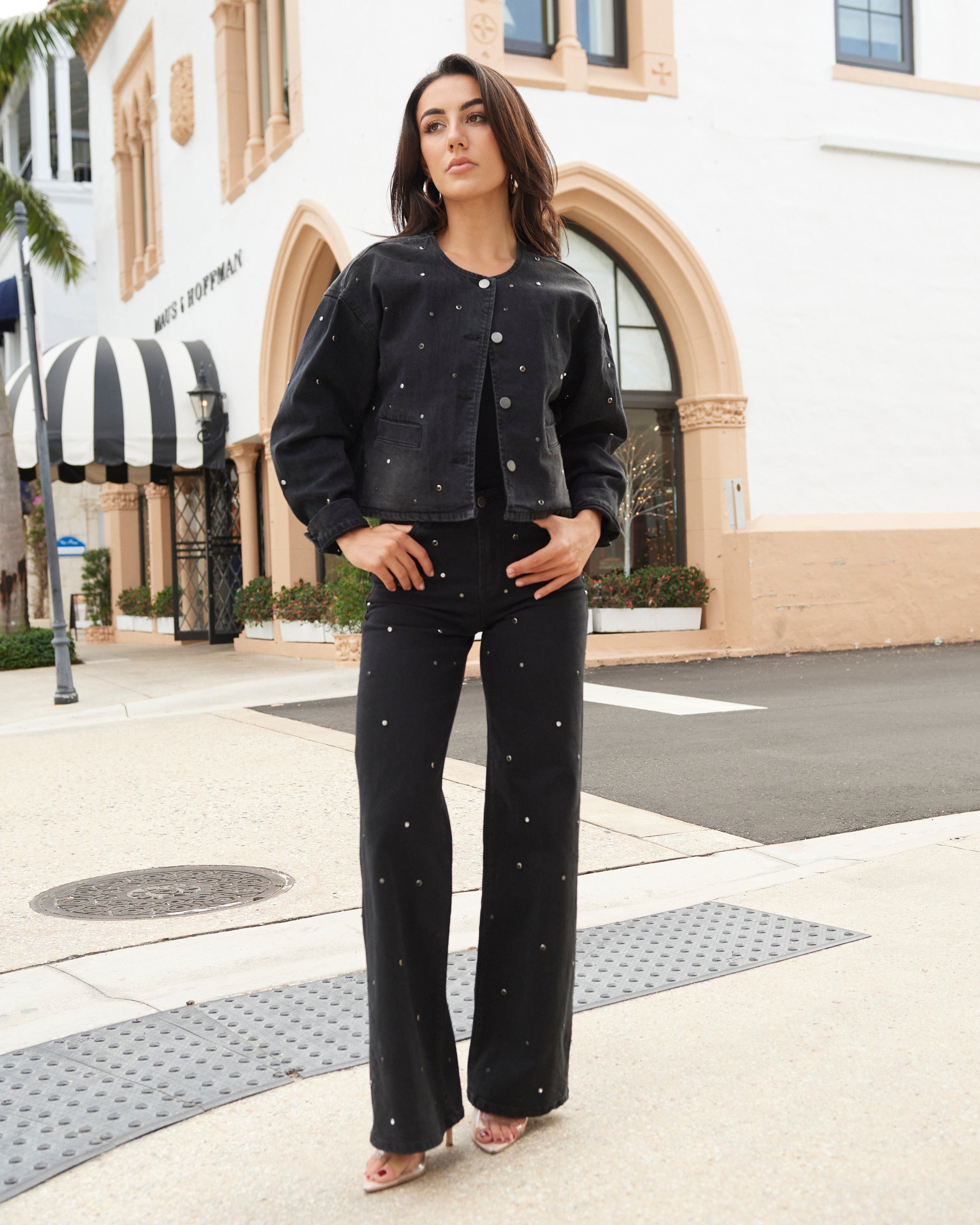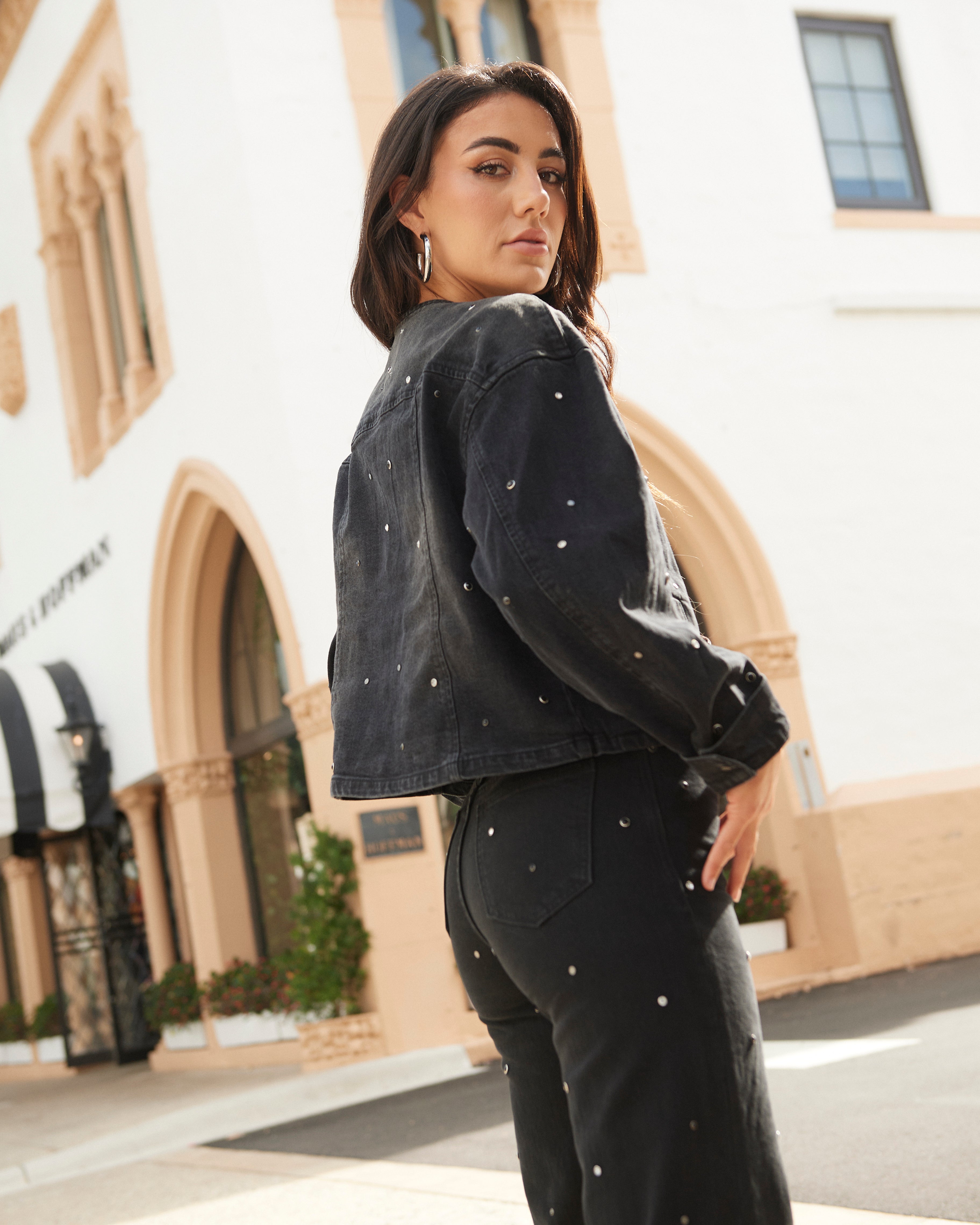 Featuring an all over gorgeous grommet detailing, this jacket is a stand-out piece! Pair with our matching grommet pants!