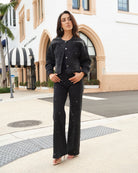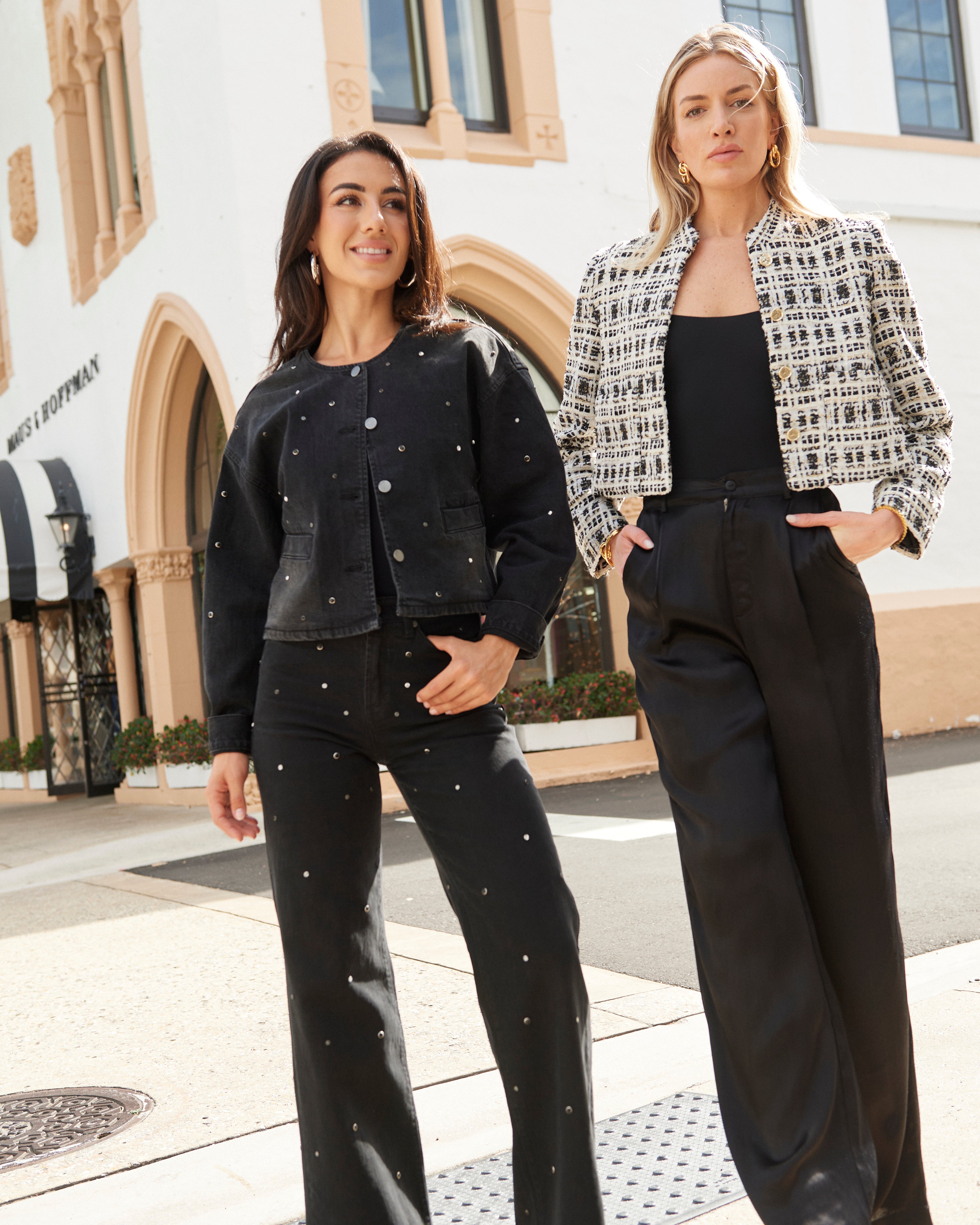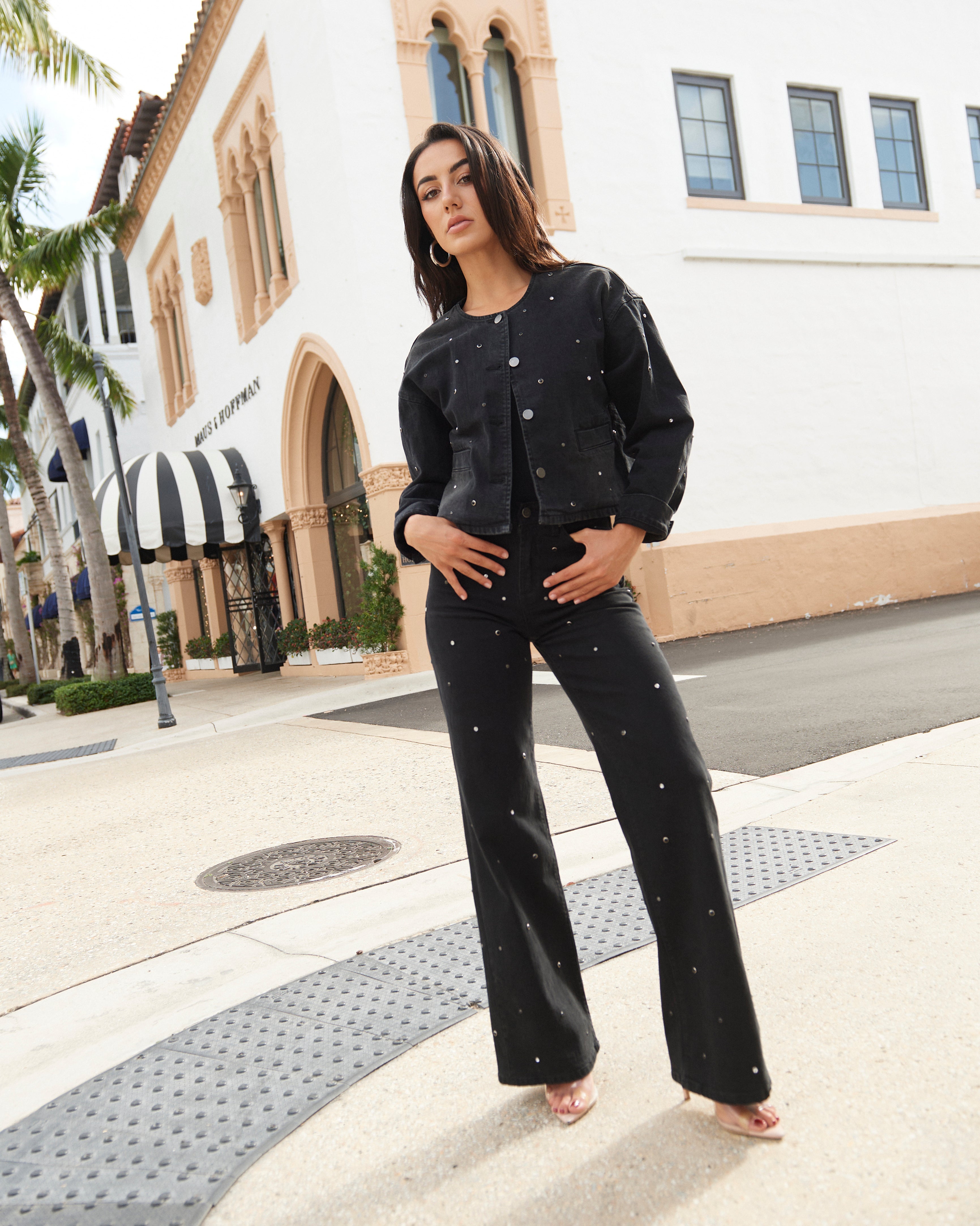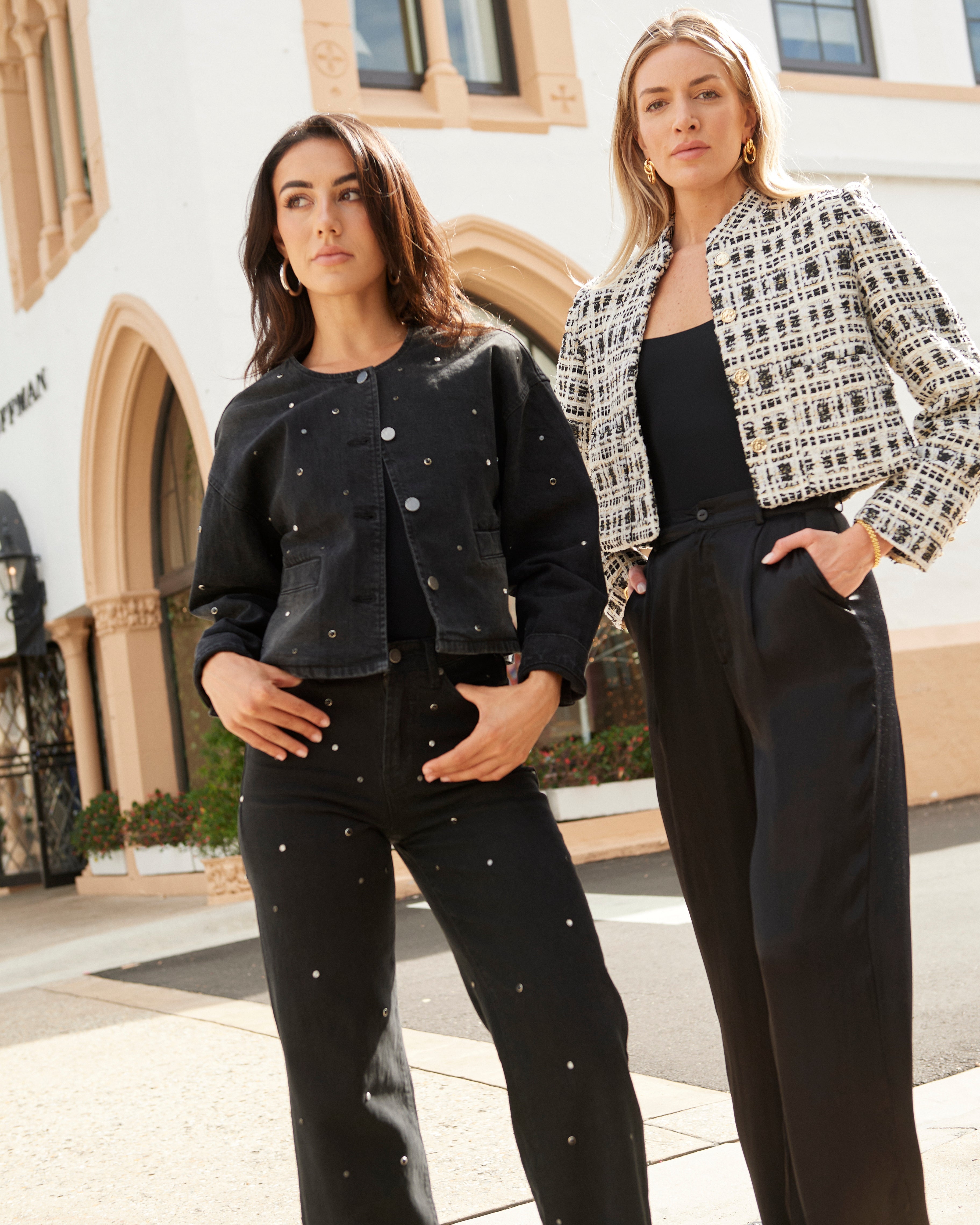 Featuring an all over gorgeous grommet detailing, this jacket is a stand-out piece! Pair with our matching grommet pants!