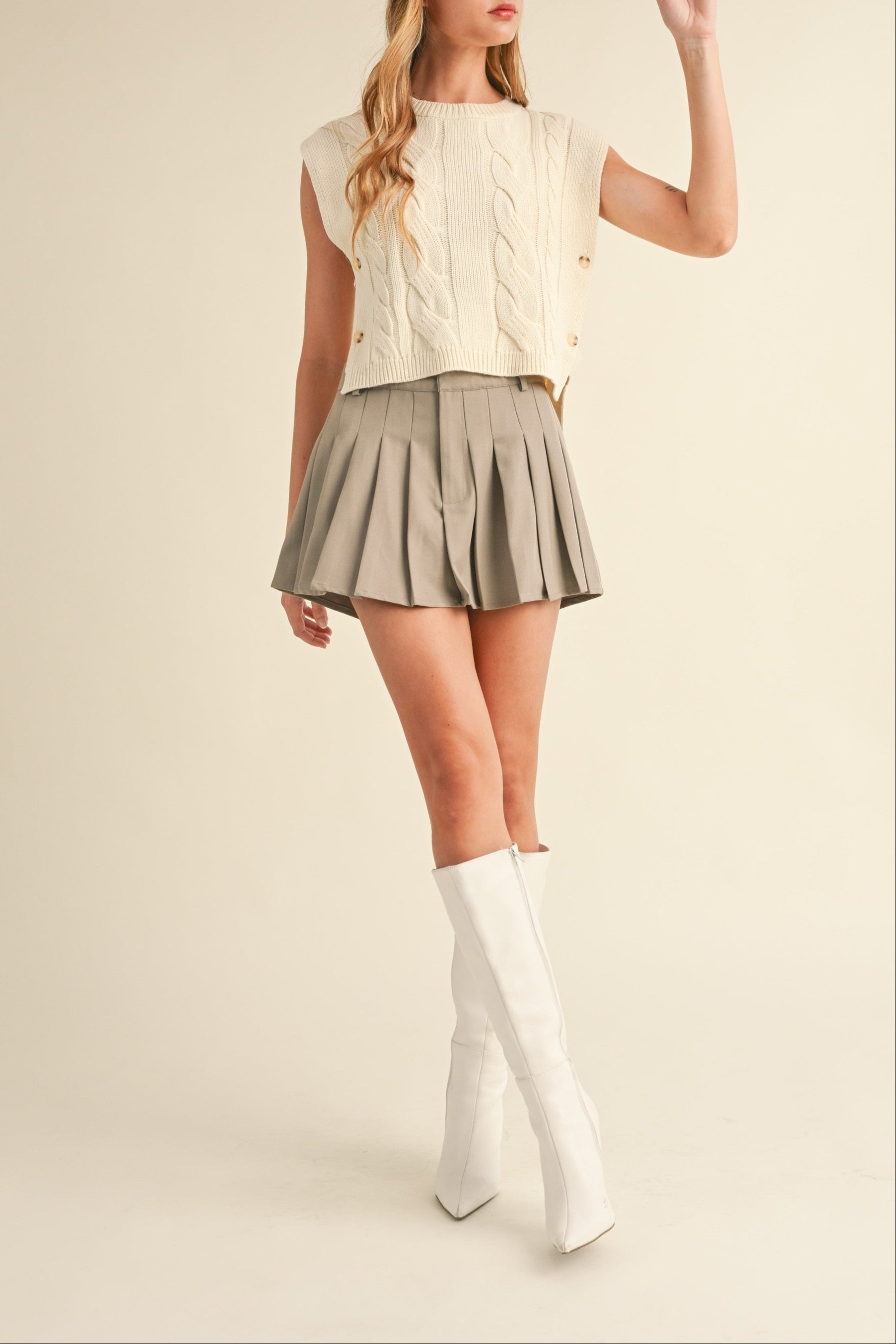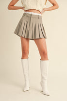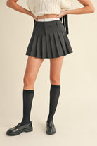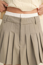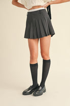Expertly designed for maximum comfort and style, our Contrast Waistband Pleated Mini Skirt features a unique elastic waistband detail and pleated design. Perfect for pairing with boots or sneakers, this cute and versatile skirt is the ideal addition to any wardrobe.