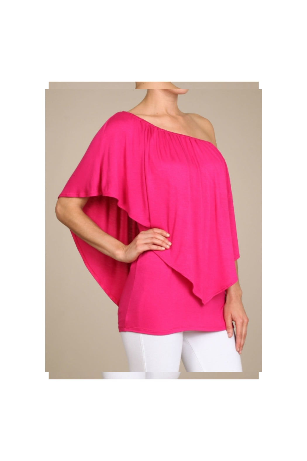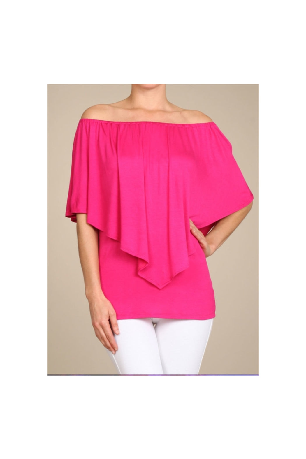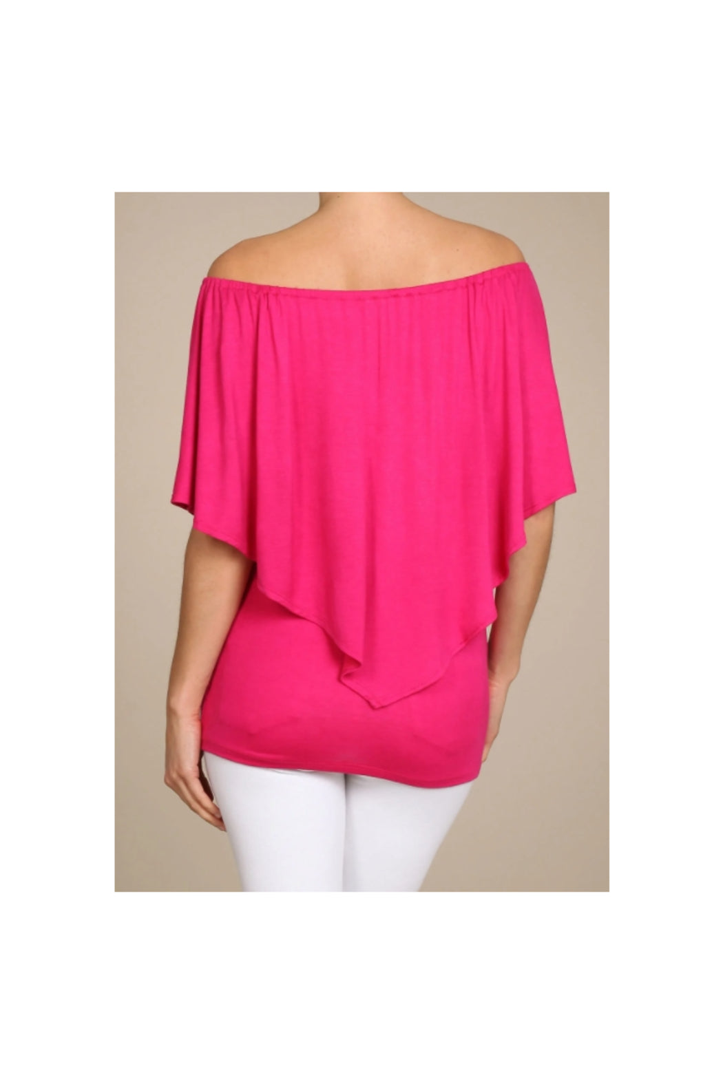 Convertible Elasticized Neckline Top - Fuchsia