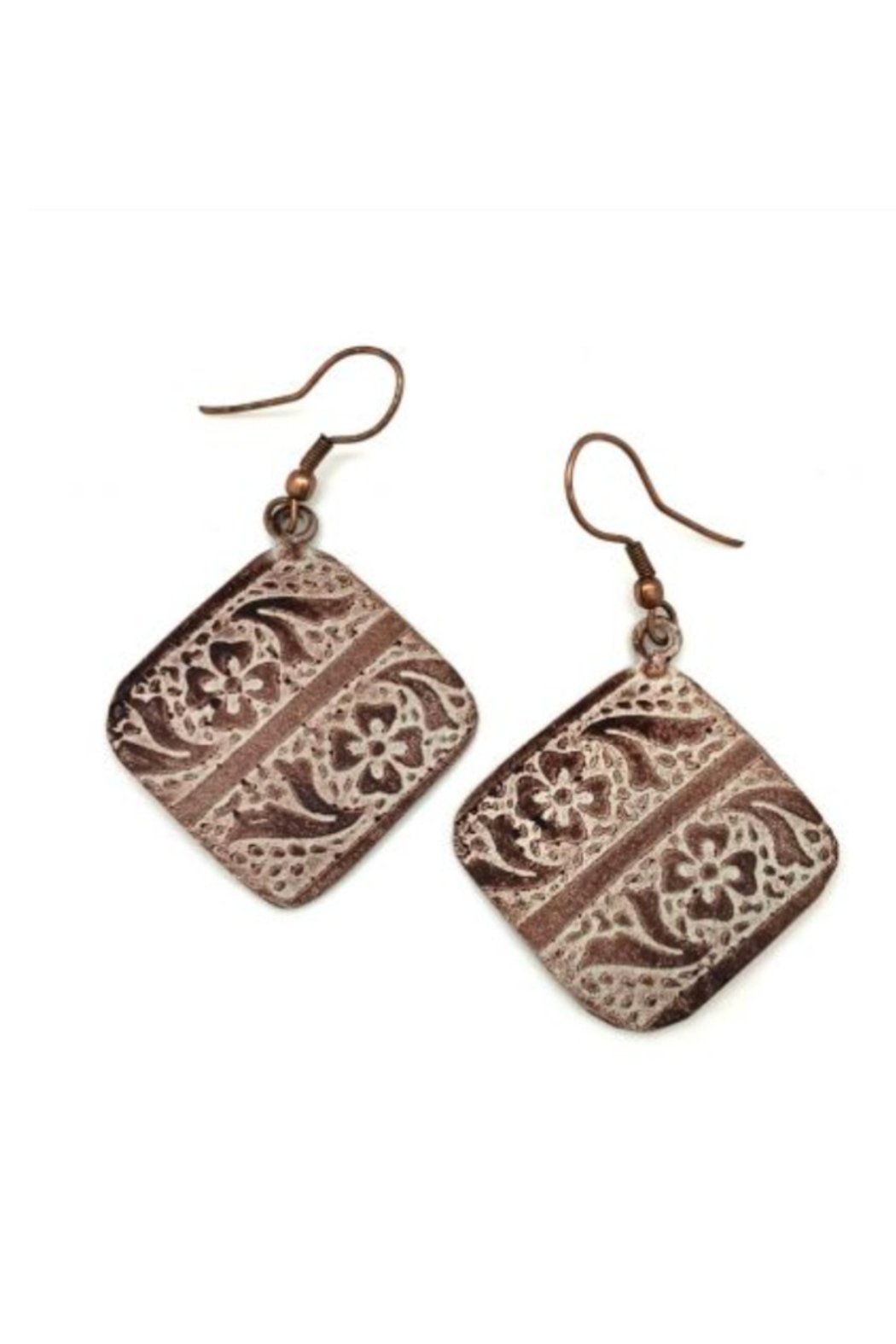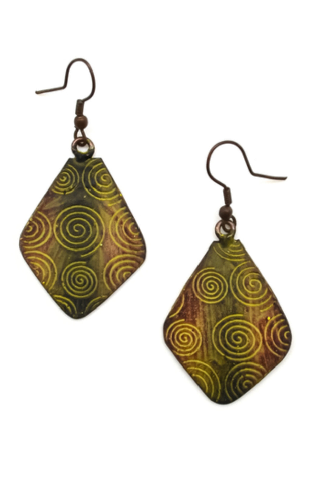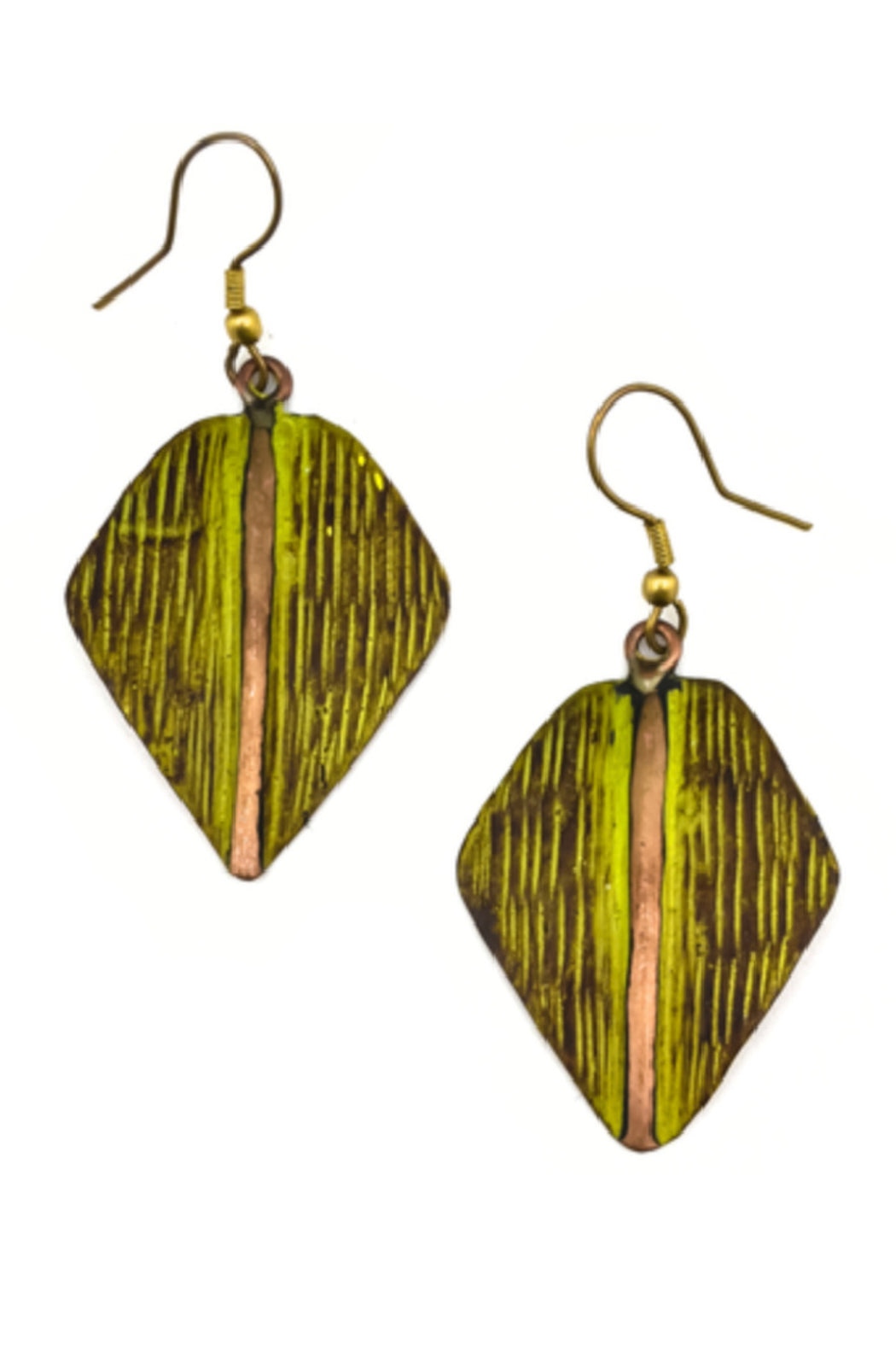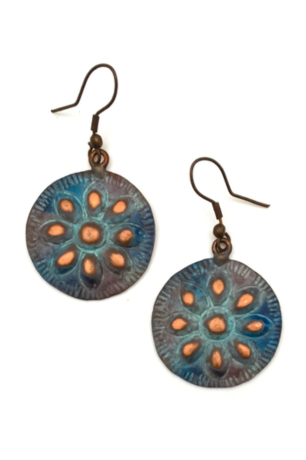 Beautiful copper earrings with patina finishes. 2.25" - 2.75" Length, .75" - 1" Width Cadmium and Lead Free.
