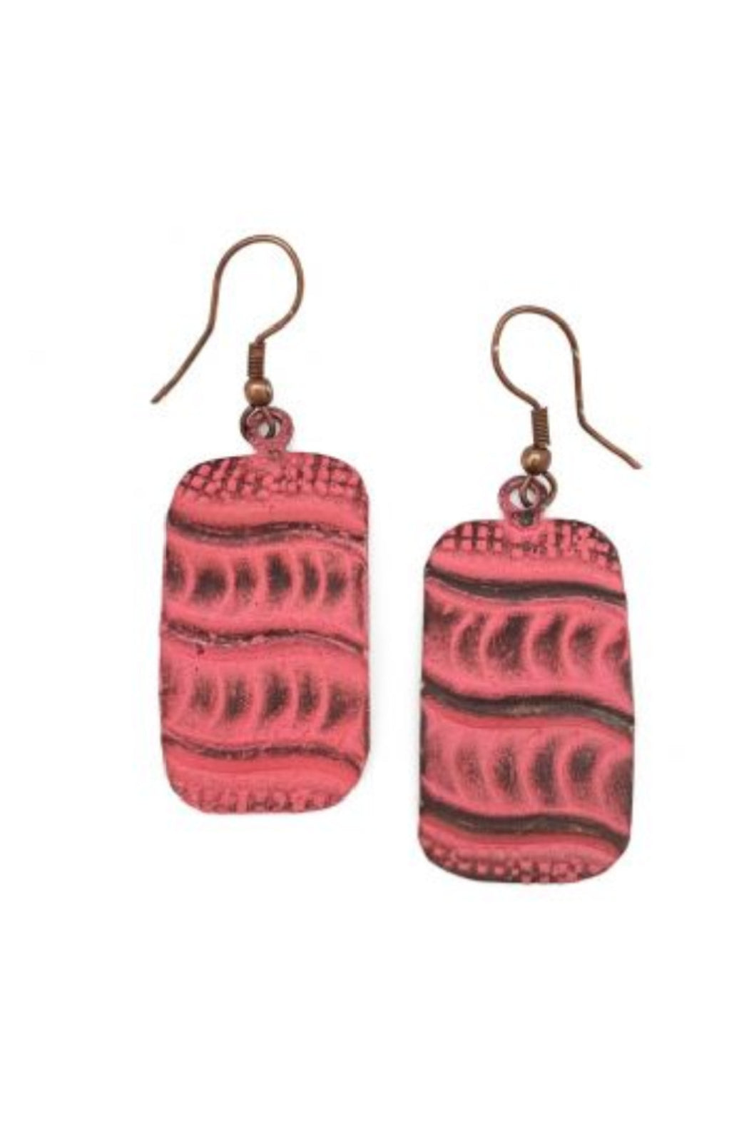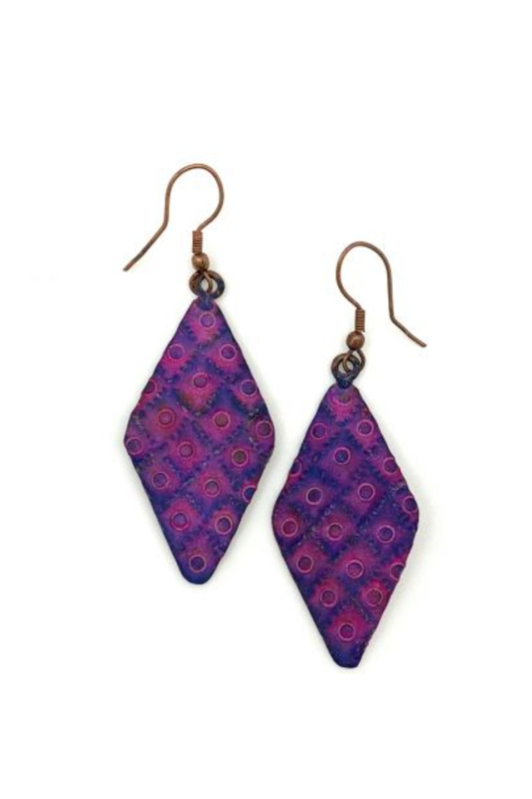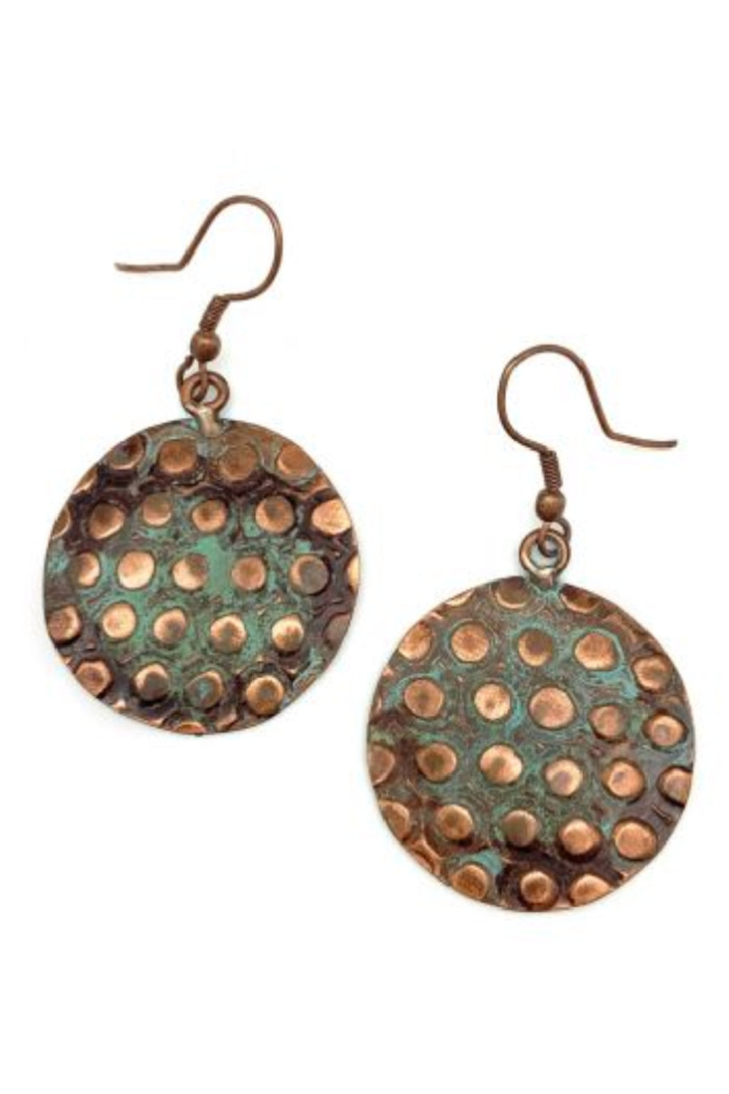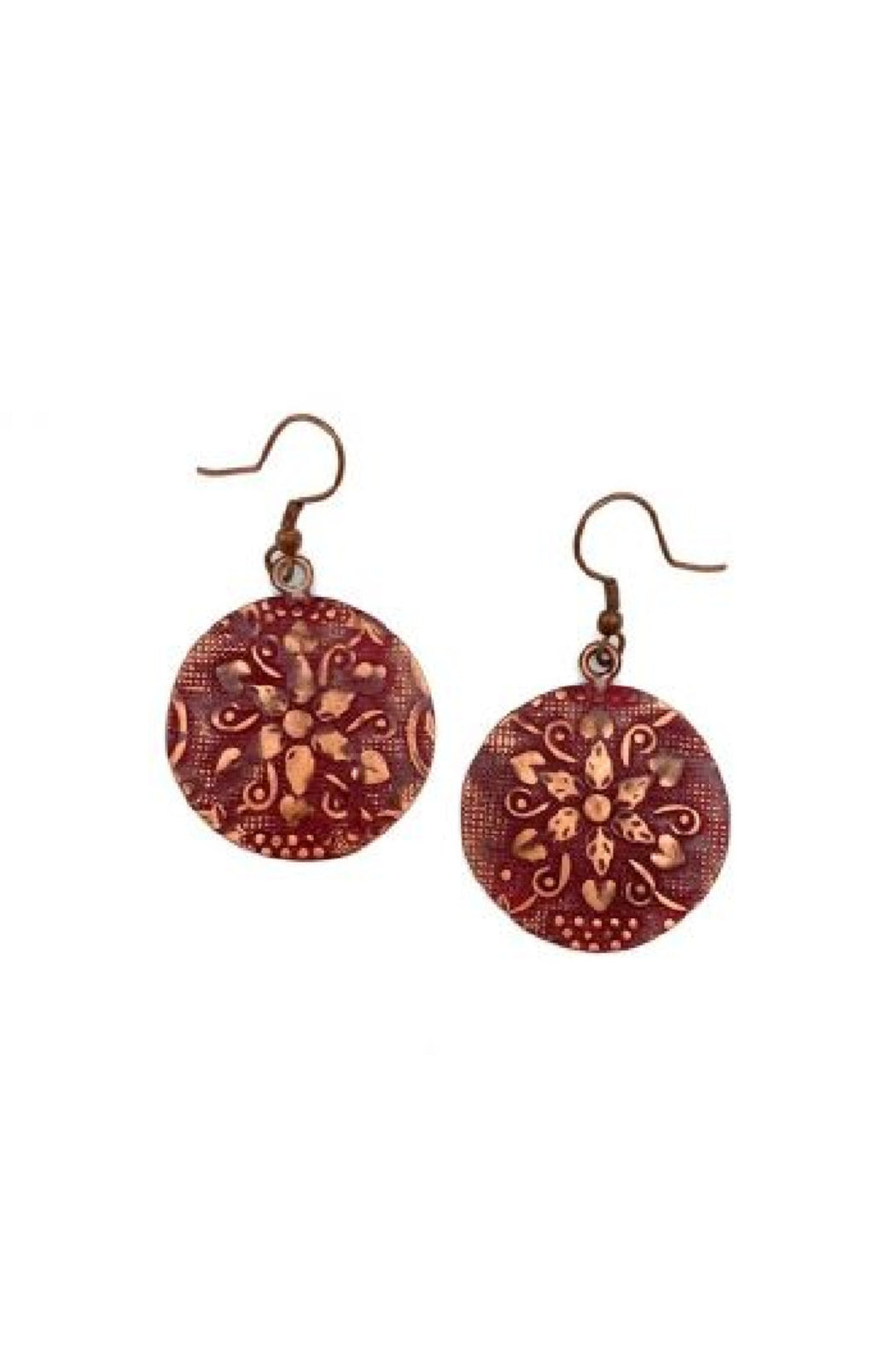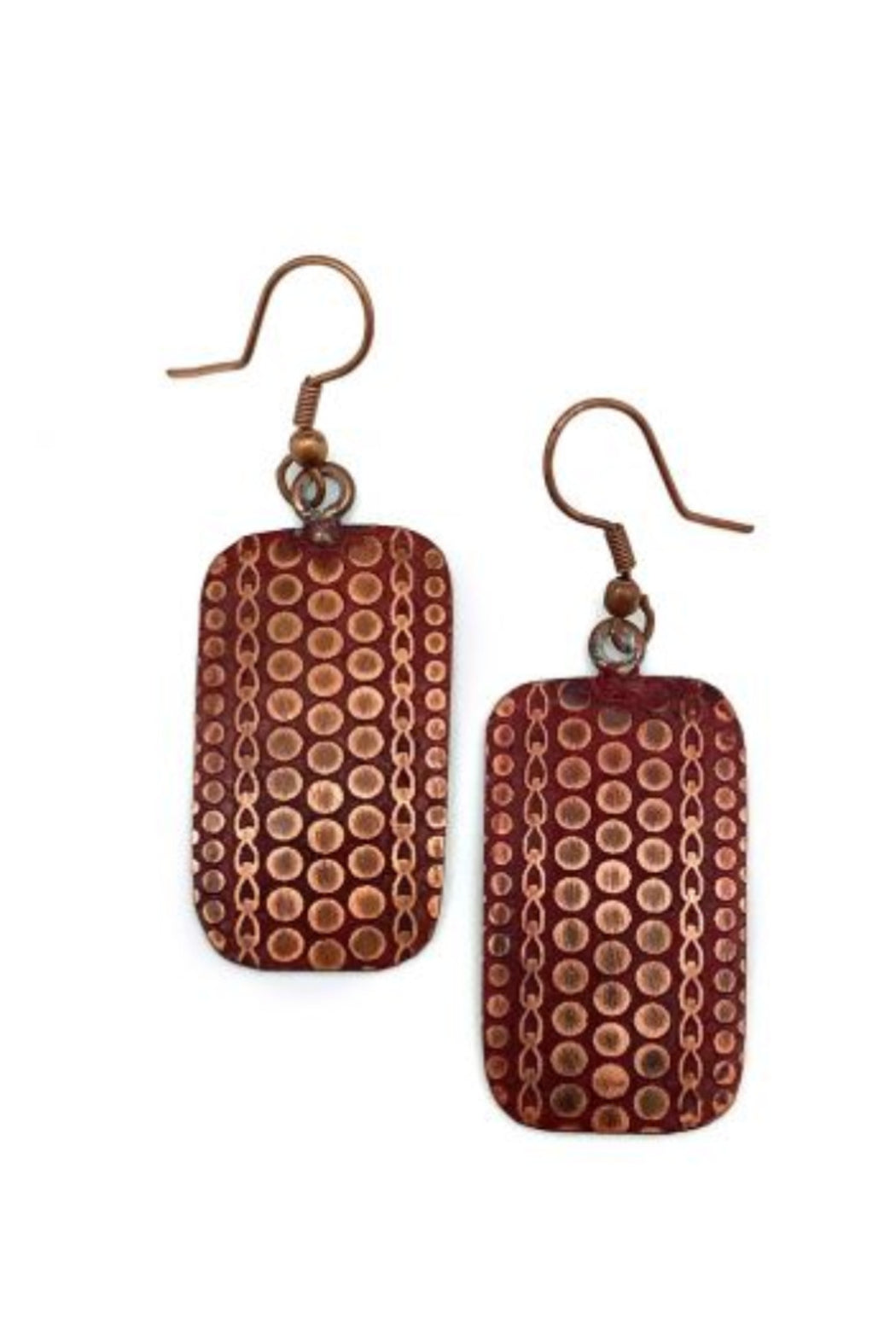 Beautiful copper earrings with patina finishes. 2.25" - 2.75" Length, .75" - 1" Width Cadmium and Lead Free.