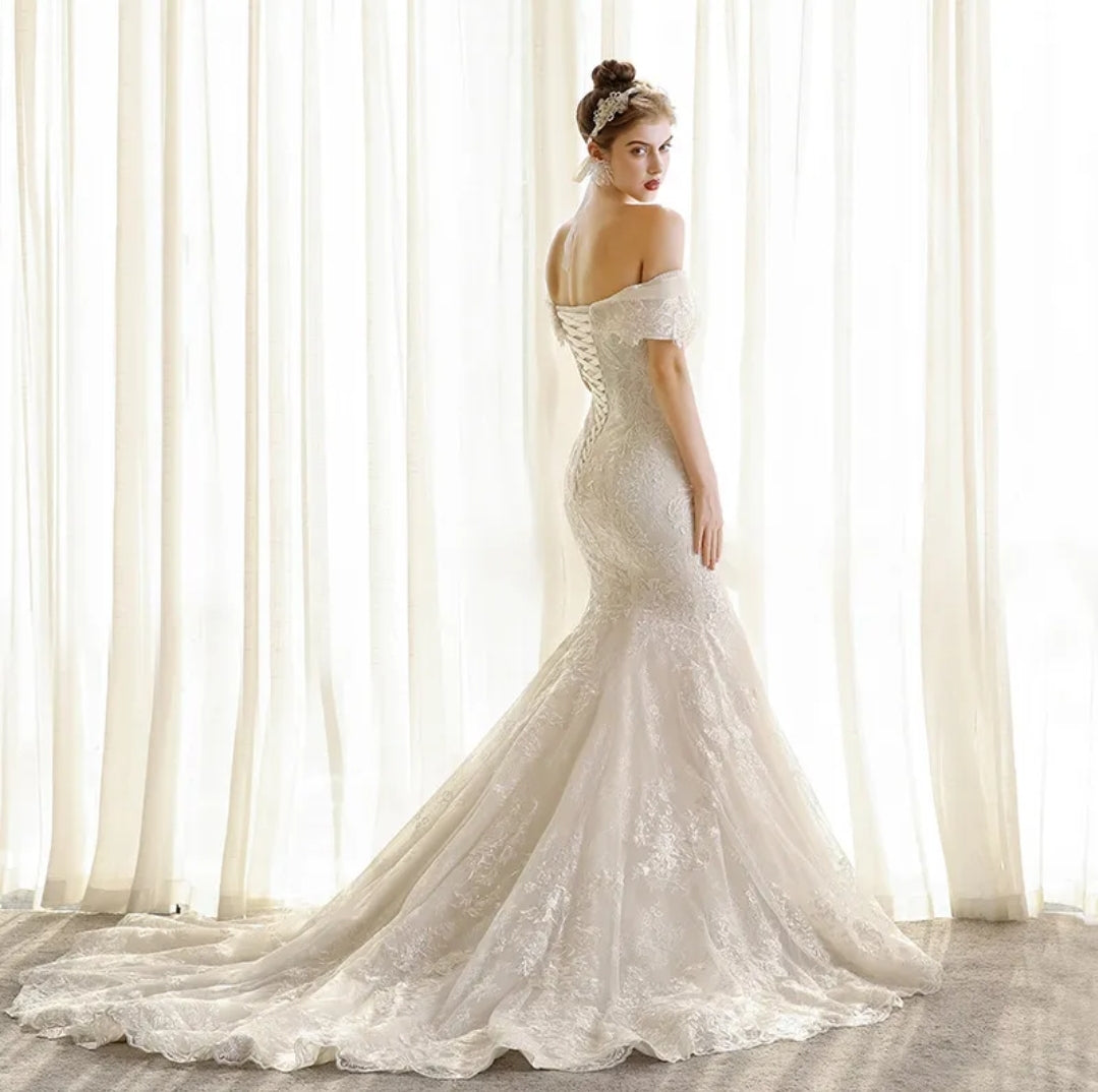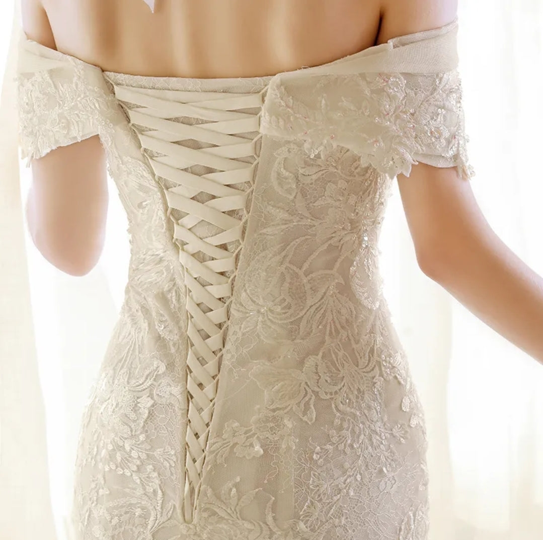 Boho Sweetheart Lace Lace Up Back Mermaid Wedding Dress