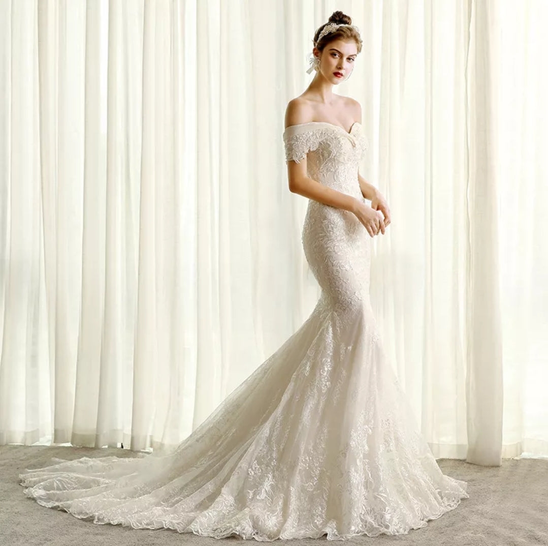 This breathtaking Boho Sweetheart Lace Mermaid Wedding Dress will make a stunning addition to your wedding. Its luxurious lace up back mermaid silhouette creates a look of undeniable elegance, while the intricate lace sweetheart neckline adds a touch of romance. Transform your big day into something truly spectacular with this magnificent dress.