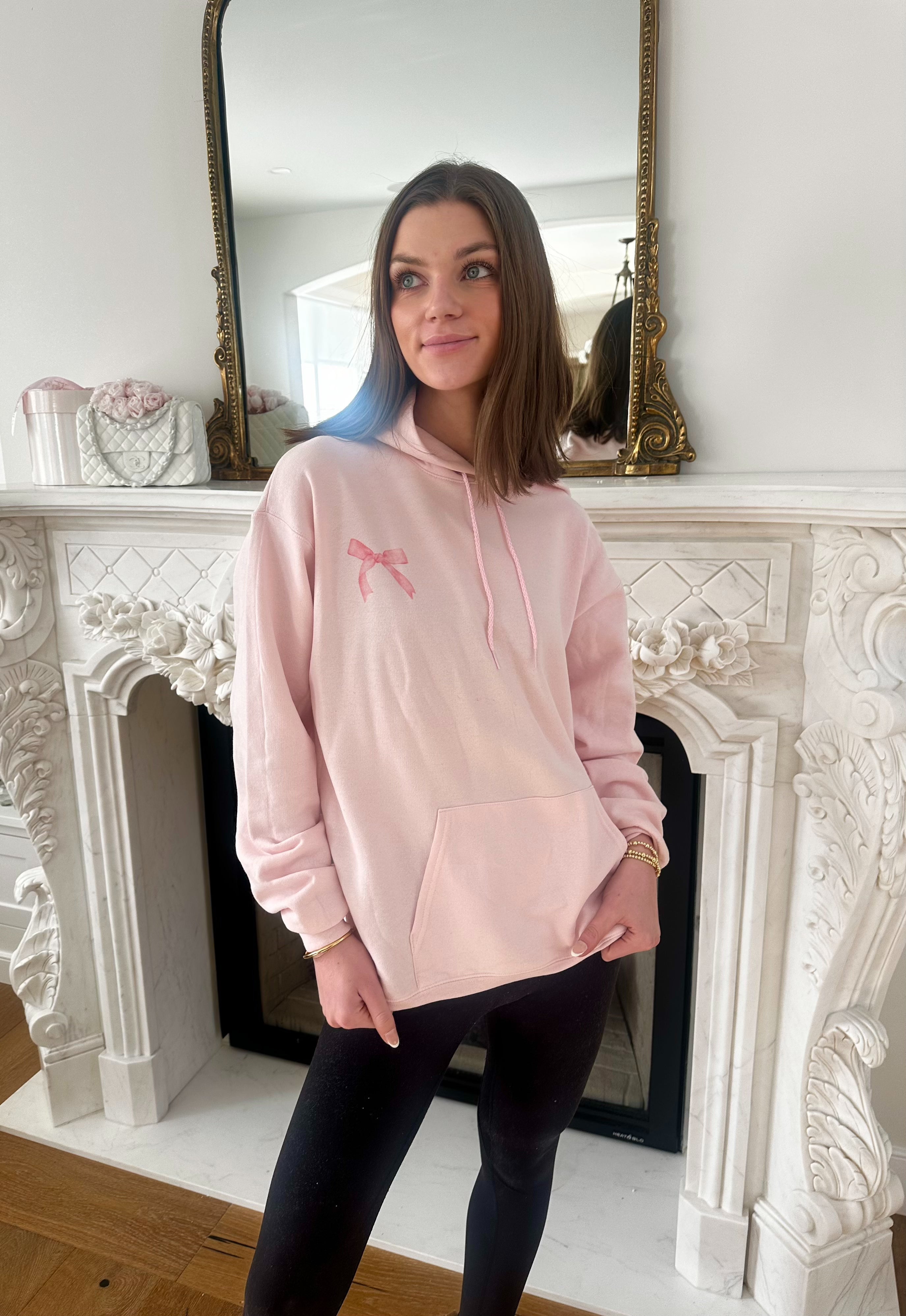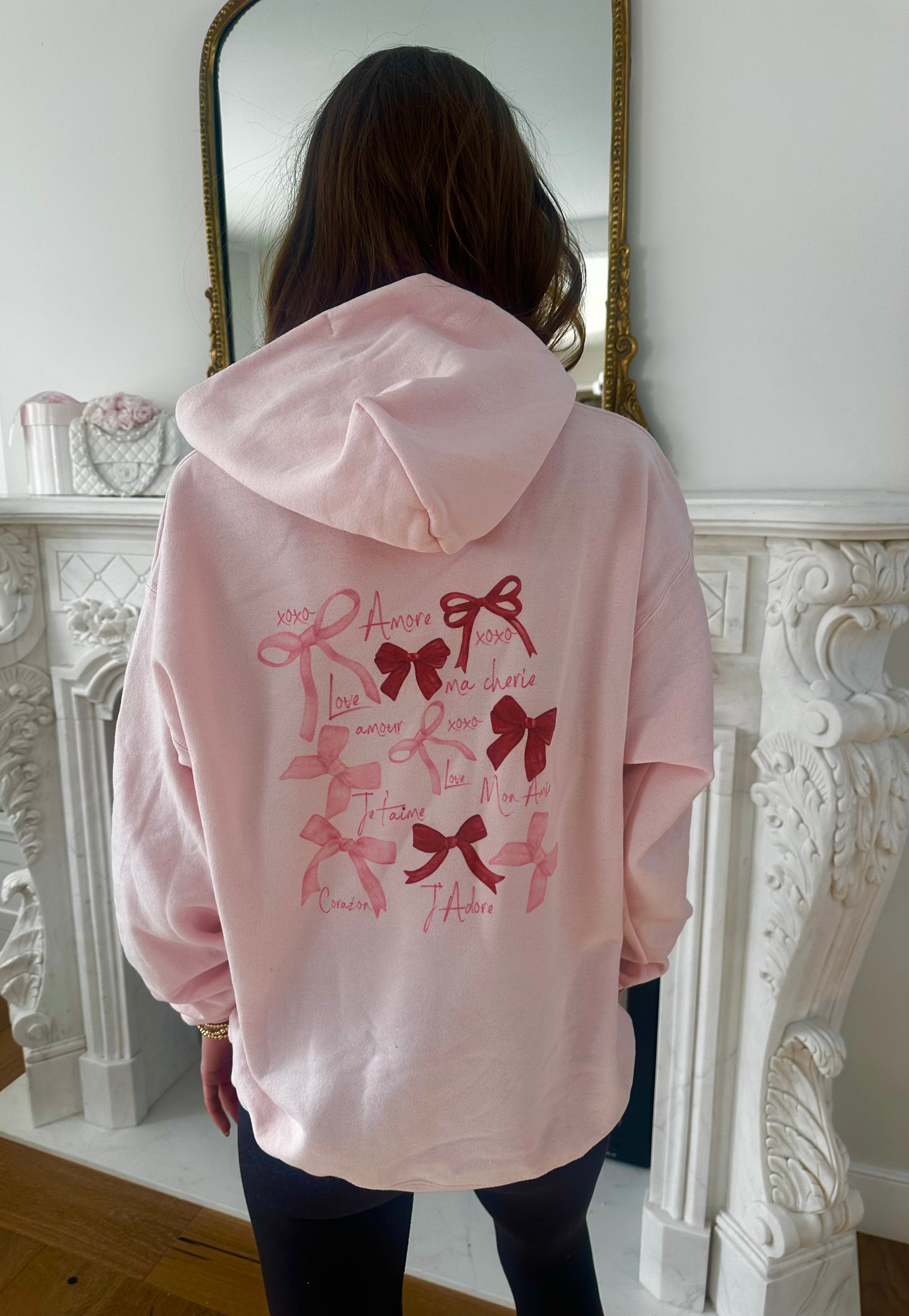 Spread love in style with the Coquette Love Language Hoodie! This playful pink hoodie features coquette bows for a flirty touch. Show off your love language in a quirky and fun way for Valentine's Day. (You'll be sure to make a statement with this one!)
