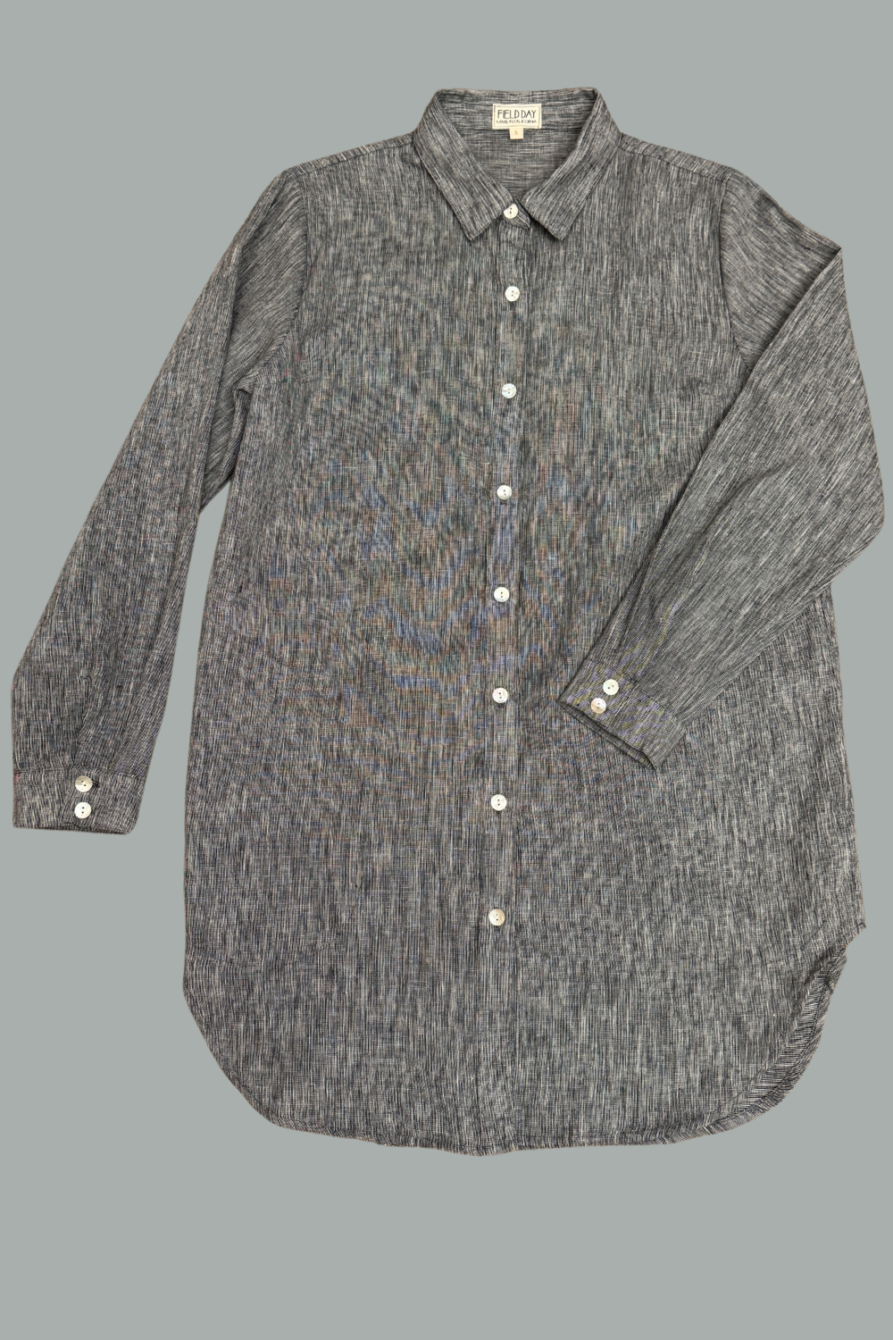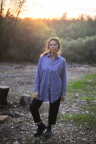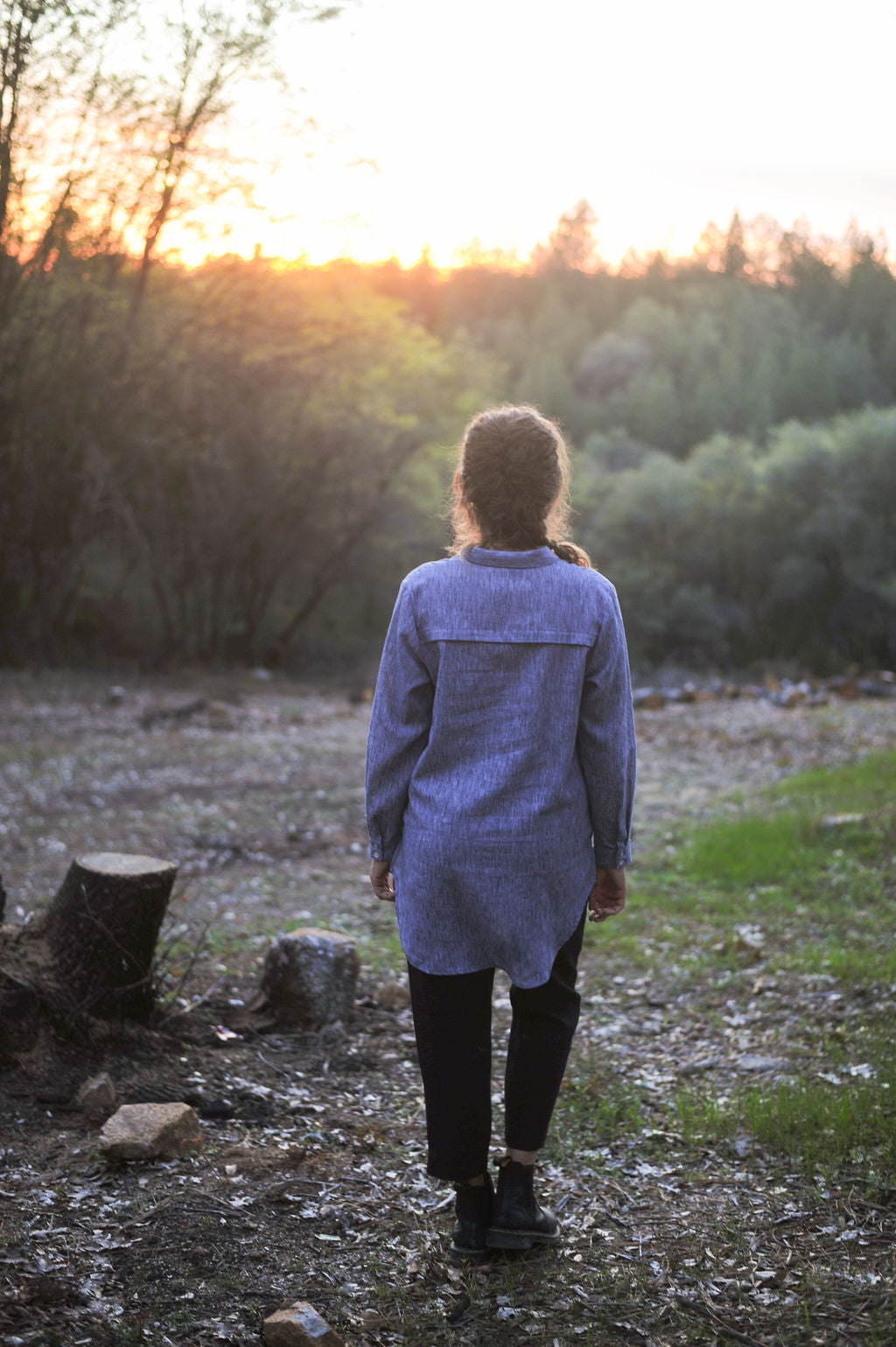 Made from 100% Linen deadstock fabric in a blue / gray tones