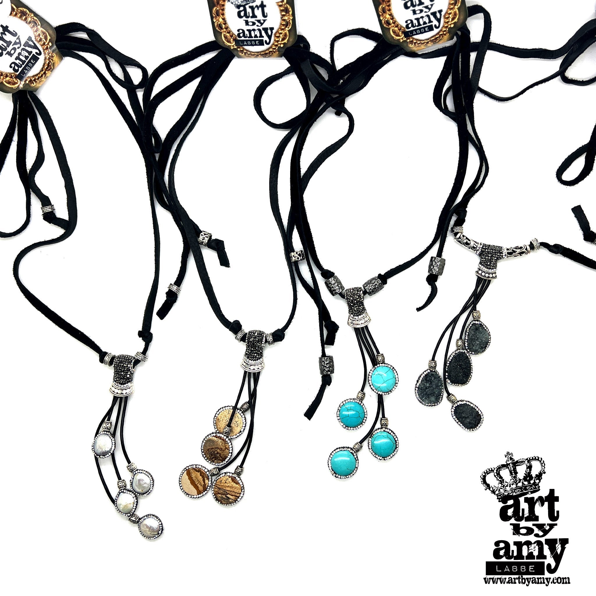 Country Rain has our super soft adjustable black leather laces with unique 4 teared stones adorned with hematite bling crystals. Super light, cute, and FUN!!!