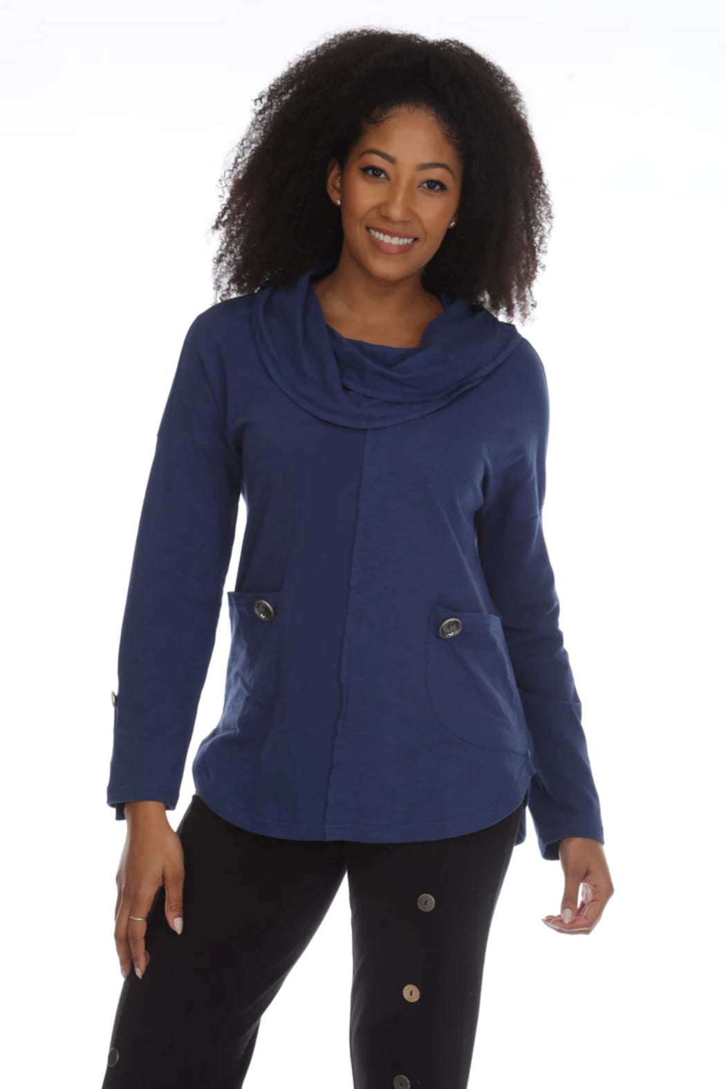 Versatility is the key to every well-edited wardrobe, and that's why we love this easygoing stretch-cotton top. Play around with the drapey cowl neck until you find the right fit, then roll the sleeves up or down using the button-fastening tabs. Just perfect.