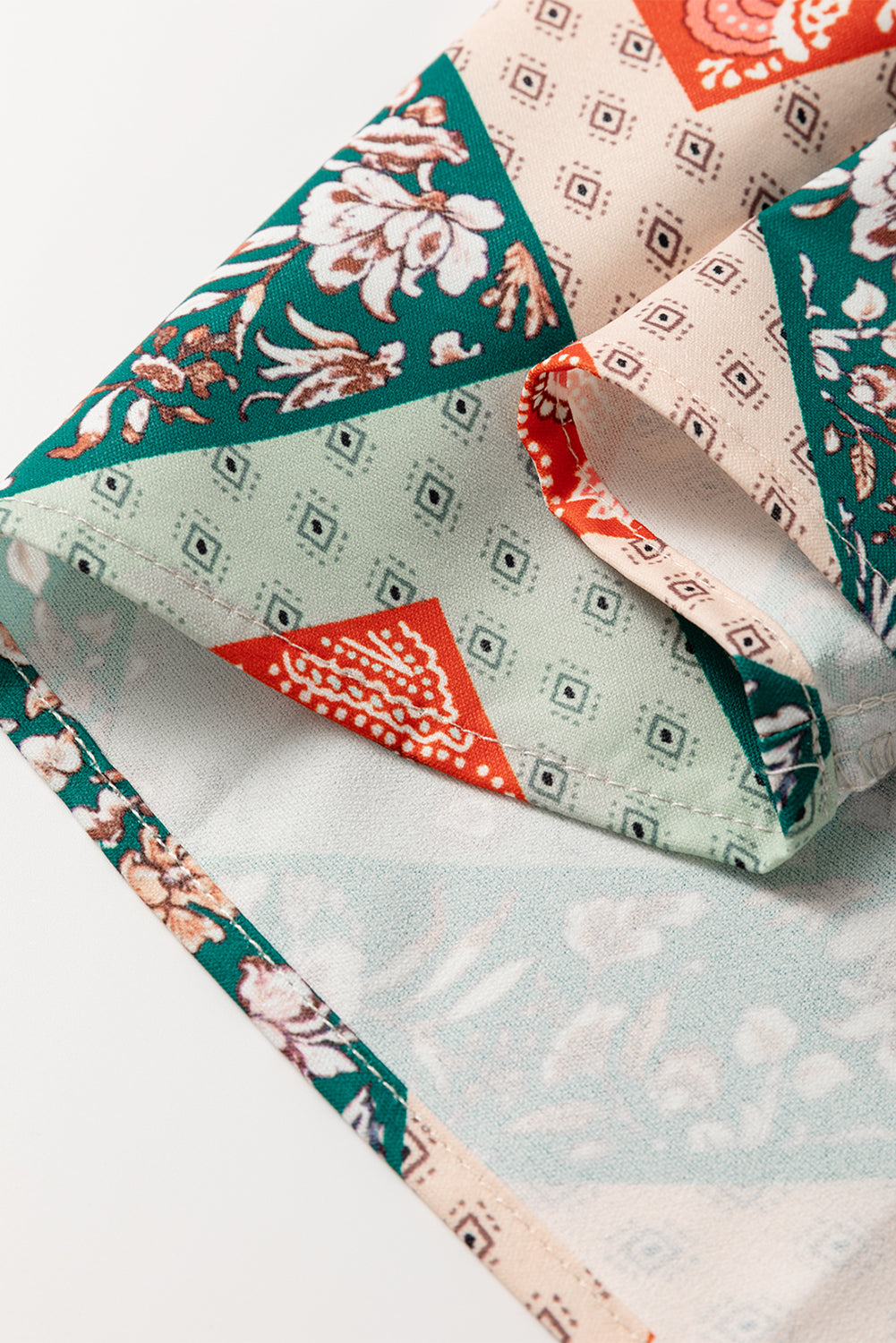 Step into a world of boho chic and geometric flair with our Cream Aztec Peplum Top. From its intricate patterns and vibrant colors to its relaxed silhouette and lightweight fabric, this blouse effortlessly exudes individuality and charm. Perfect for any occasion, this versatile top is a must-have for any fashion-forward wardrobe.