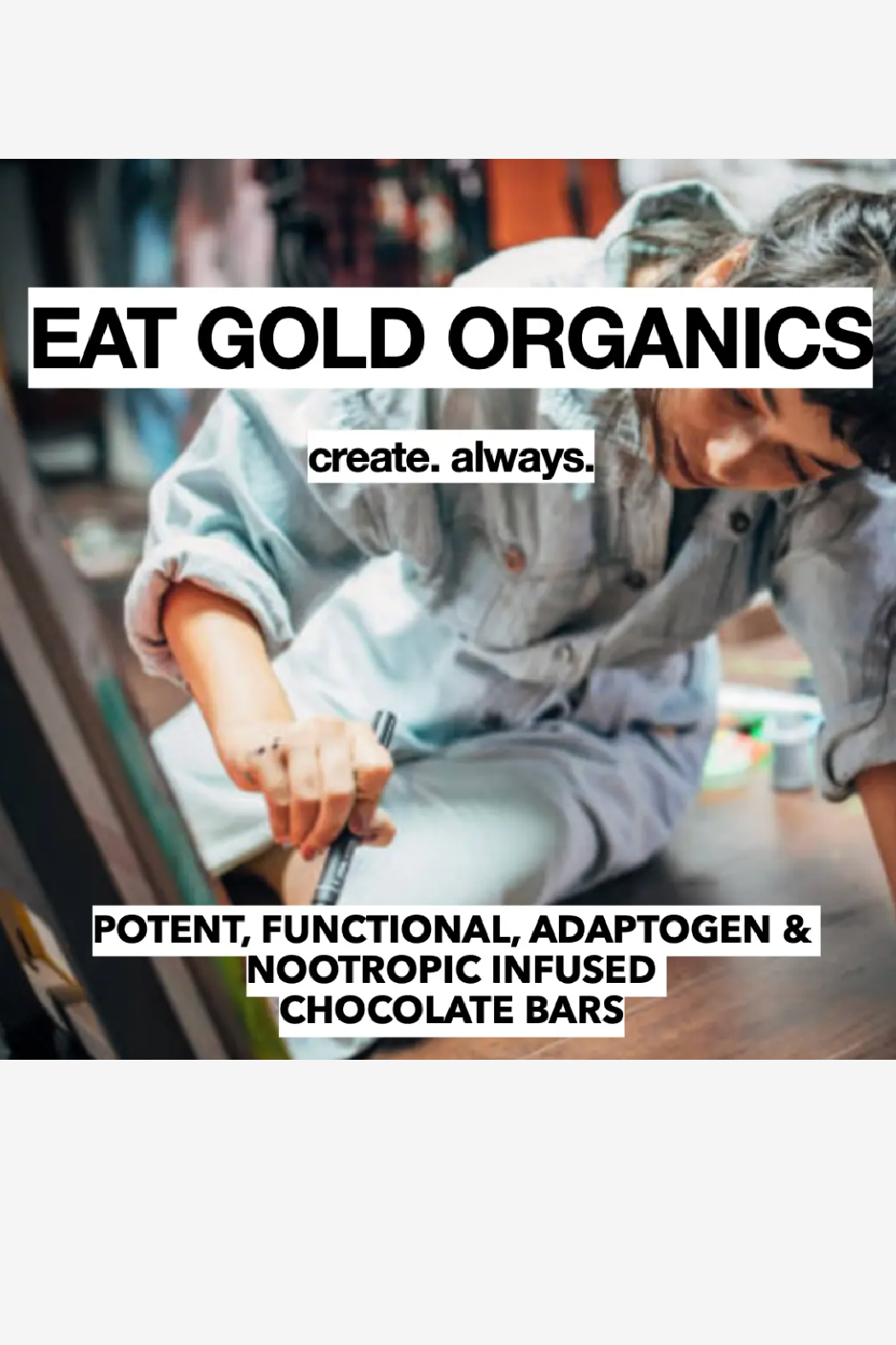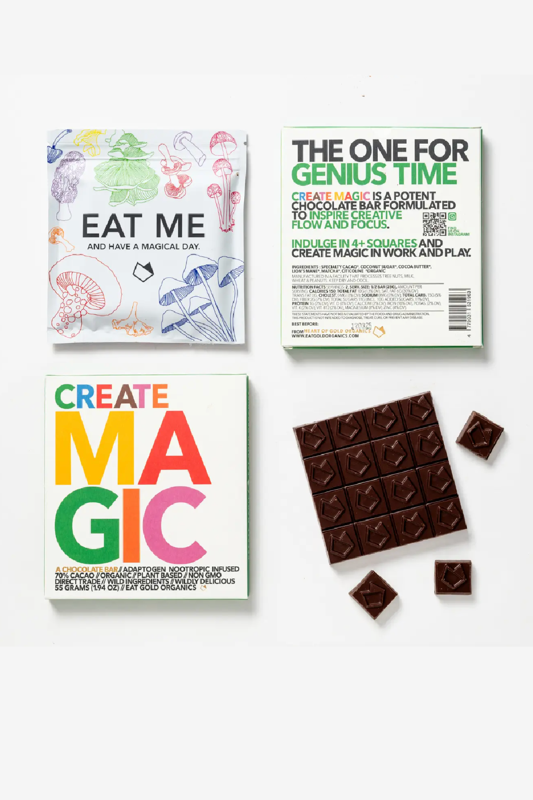 Create Magic is a potent, functional chocolate bar formulated to inspire creative flow and focus. Indulge in 4+ squares and create magic in work and play.