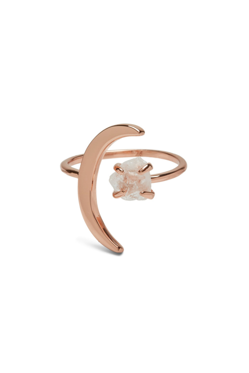 Show some lunar love to our new Crescent Moon Ring! Available in a dreamy rose gold finish, this wraparound style features a crescent moon shape, with an amethyst or white quartz accent for an extra dose of dazzle.