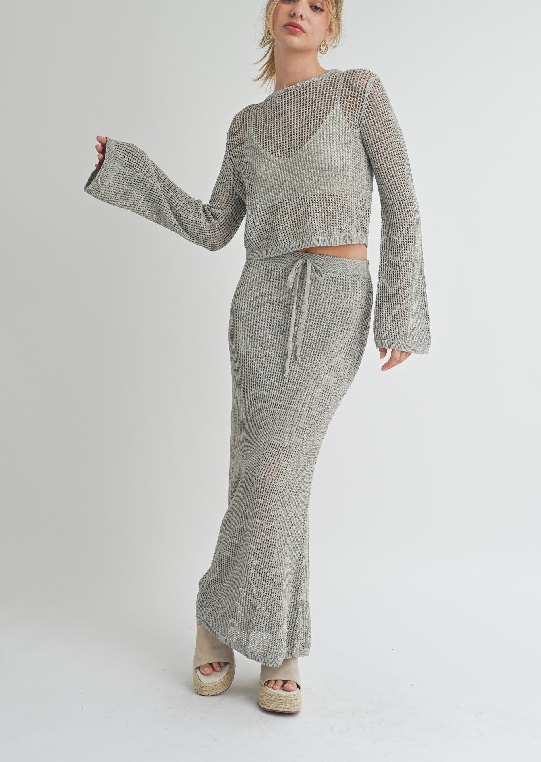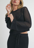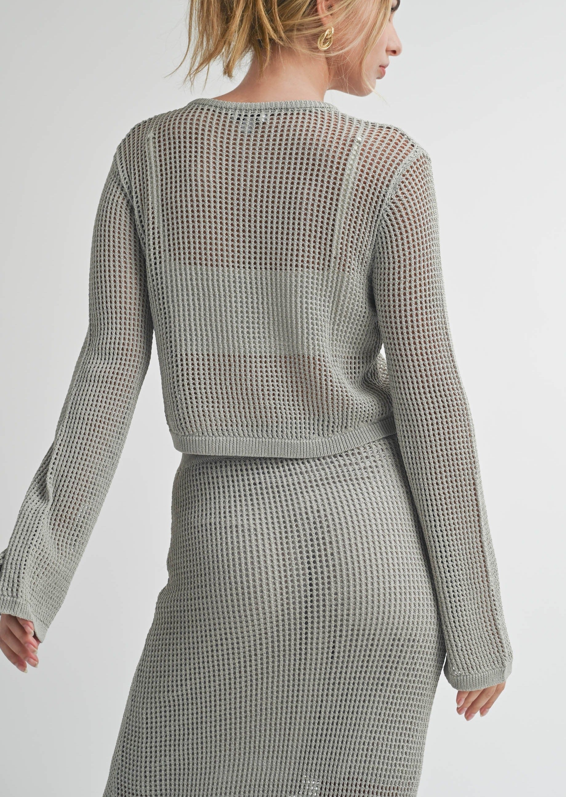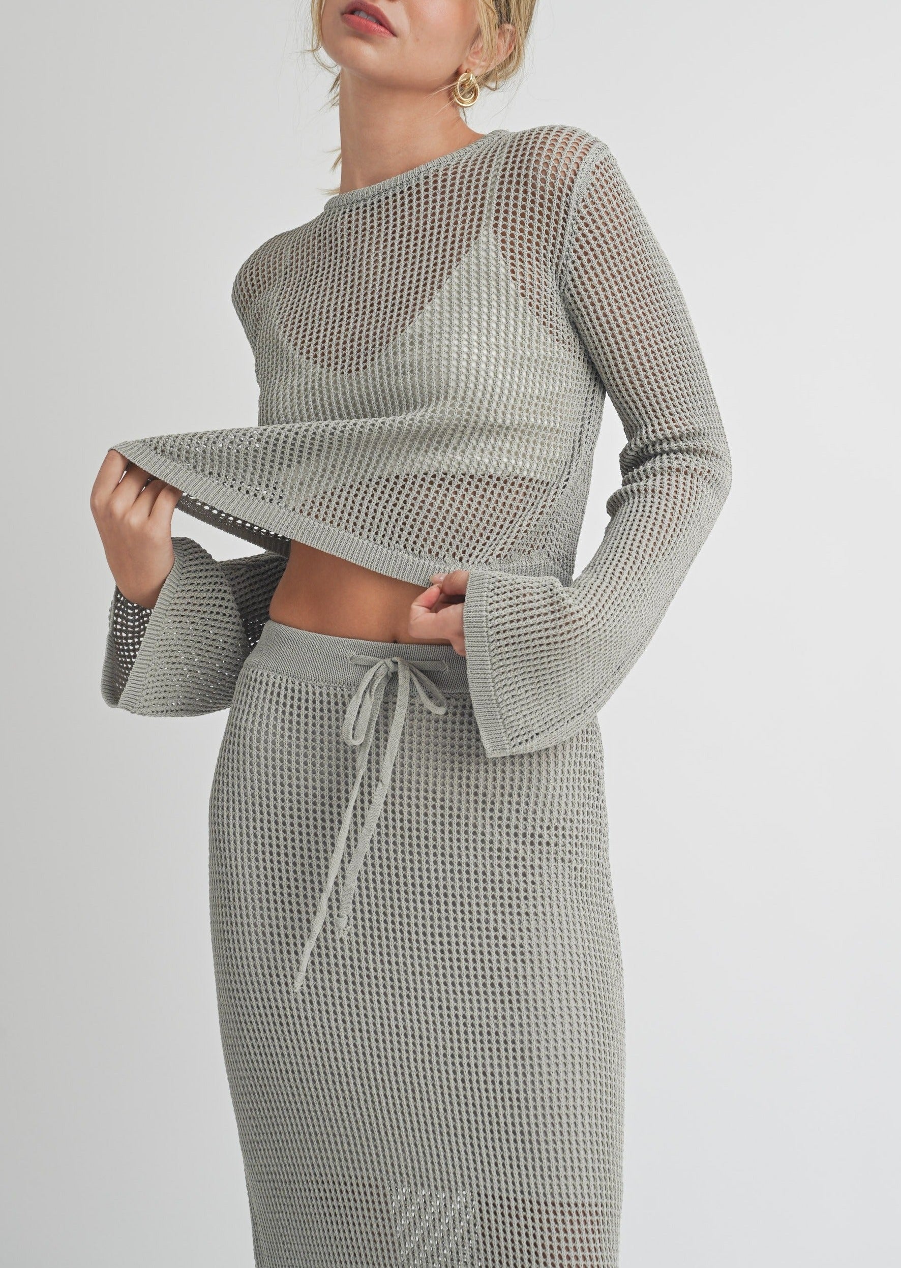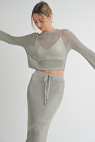 Crafted with premium quality materials, this knitted crop top exudes sophistication and style. Its long sleeves add an elegant touch, while the matching skirt (sold separately) allows for versatile styling options. Elevate your wardrobe with this must-have piece.