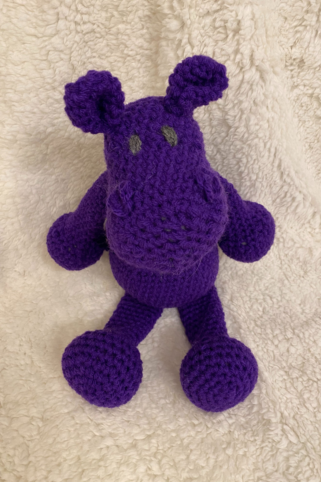 Handmade crochet purple hippo stuffed animal. 15-18 inches long.