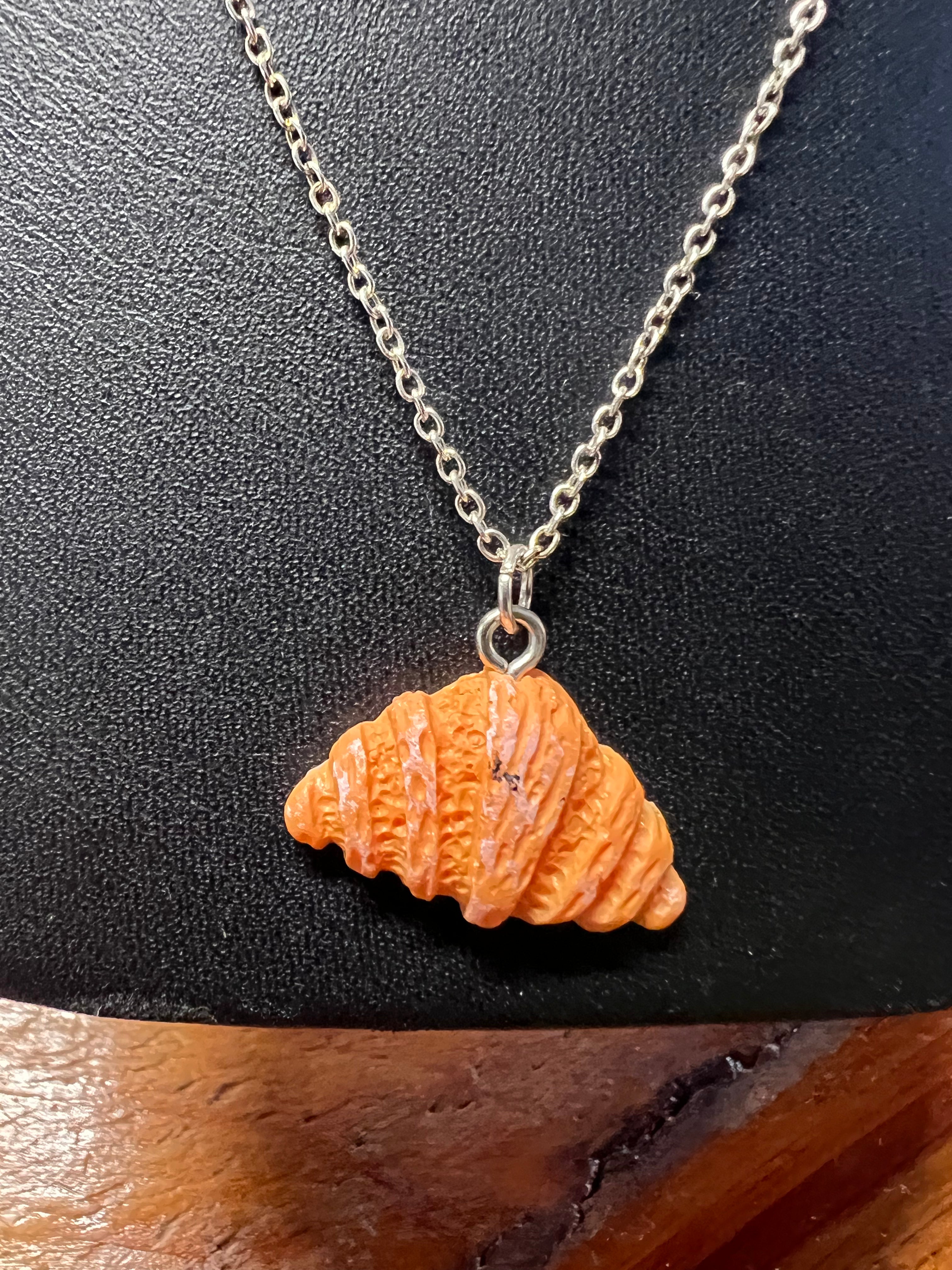 Croissant Charm .925 Sterling Silver Necklace is perfect for foodies! Pair this with our matching earrings. The necklace measures 18 inches. the charm is about .5 inches tall.