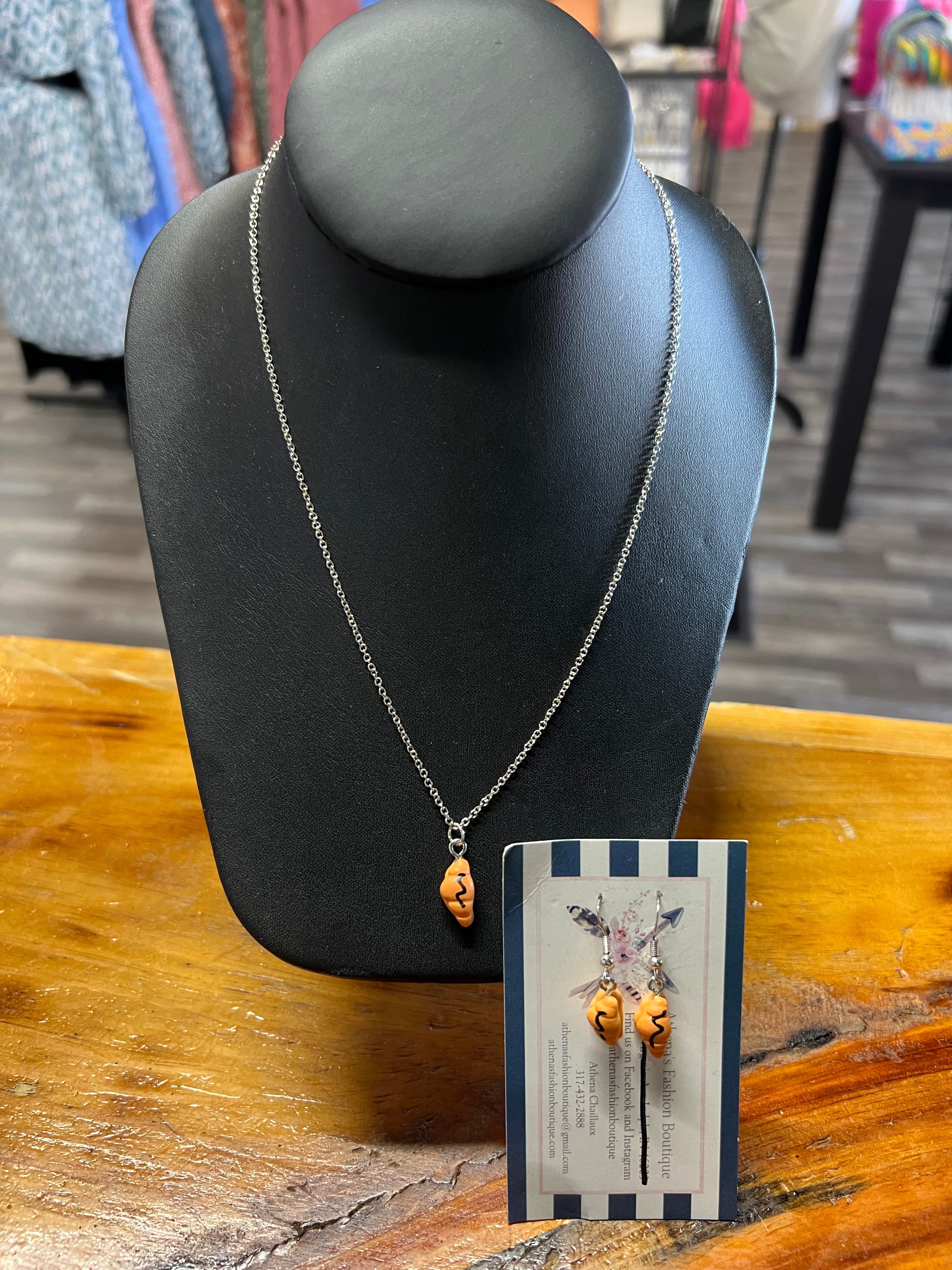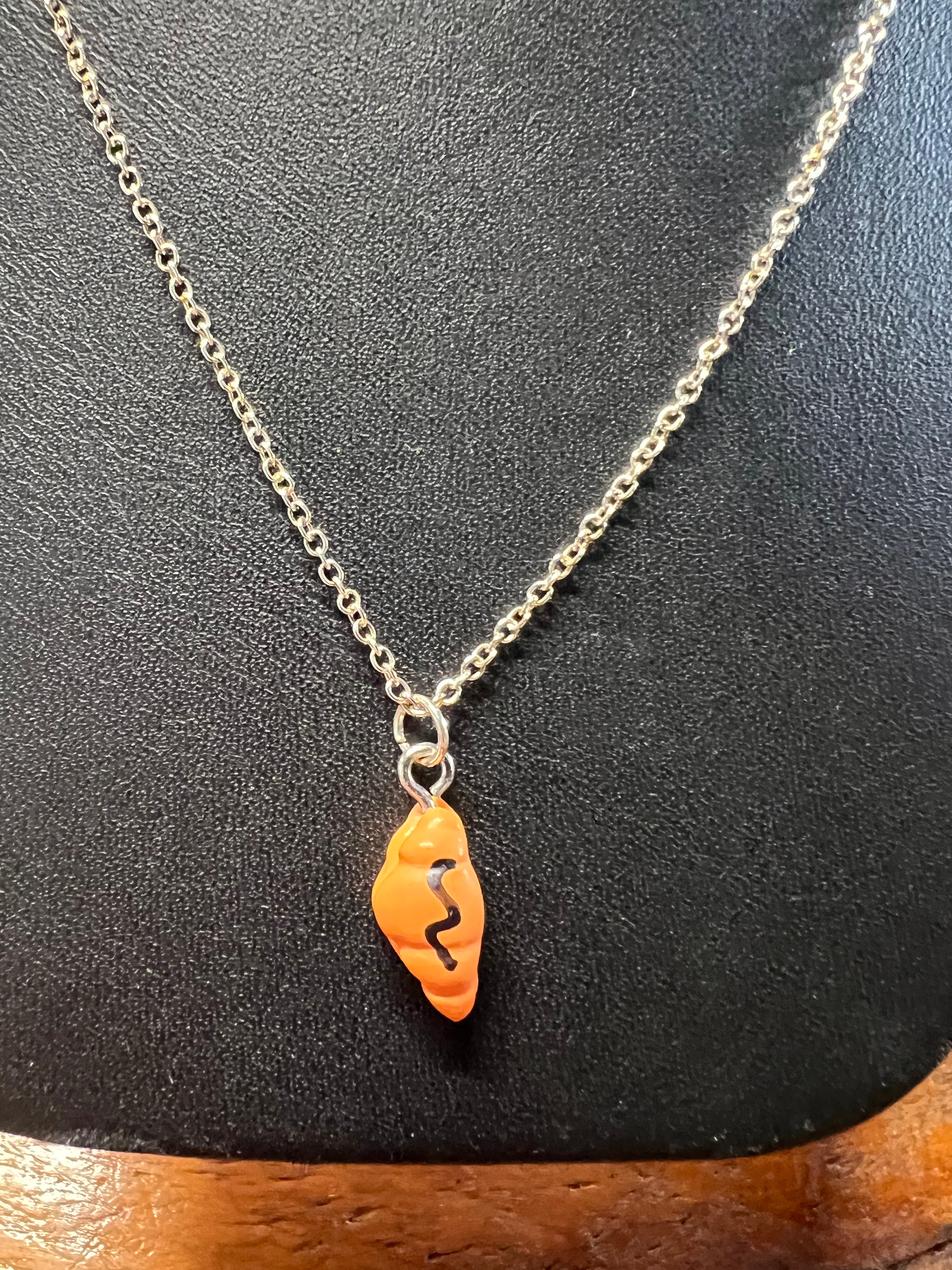 Croissant with Chocolate Drizzle .925 Sterling Silver Necklace