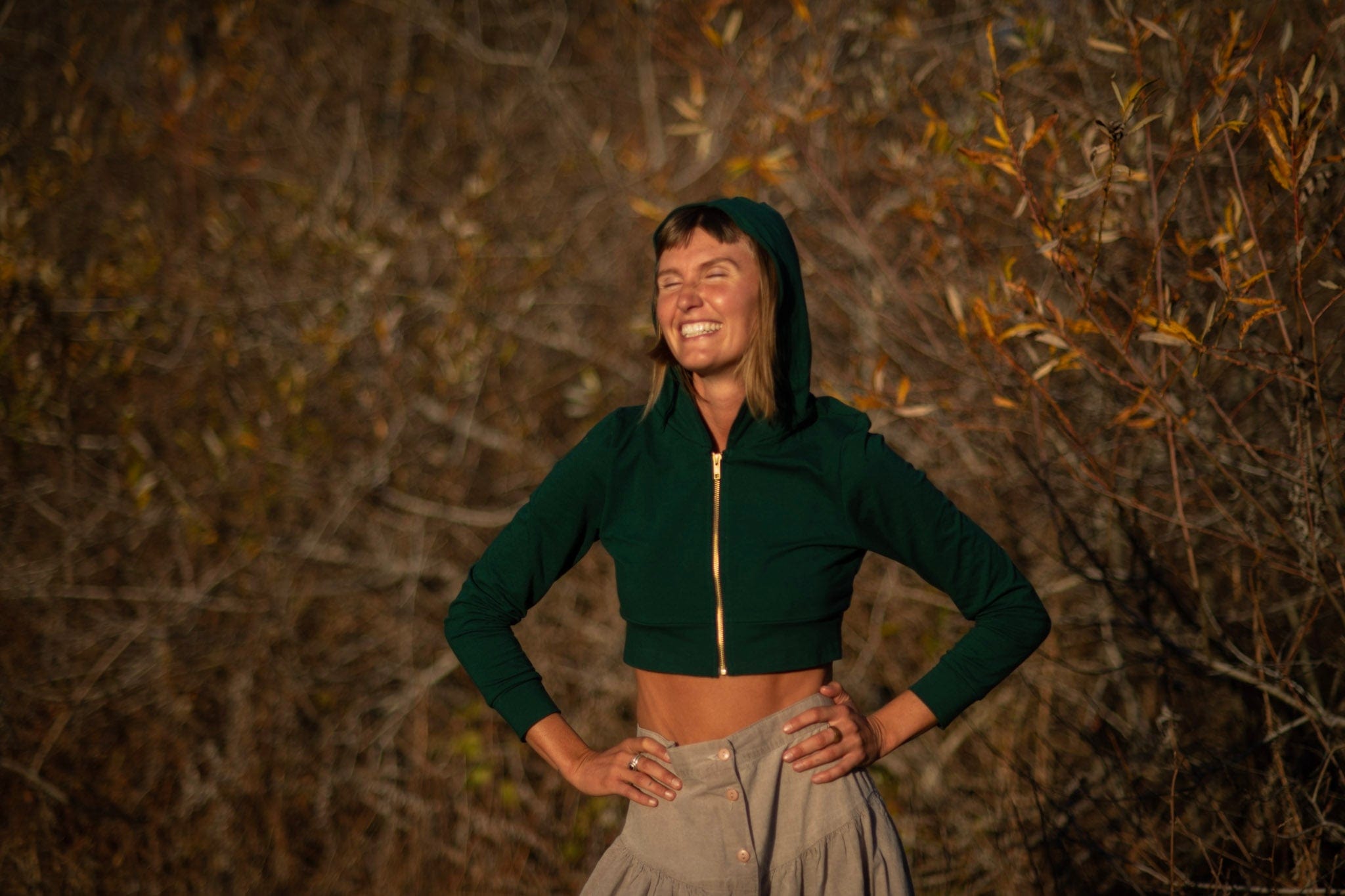 For all you crop top, high waisted lovers out there. We made this perfectly flattering Cropped hoodie to pair with all of our dresses, skirts and pants for the chillier days and brisk nights.  Perfect lightweight liner for cropped jackets.