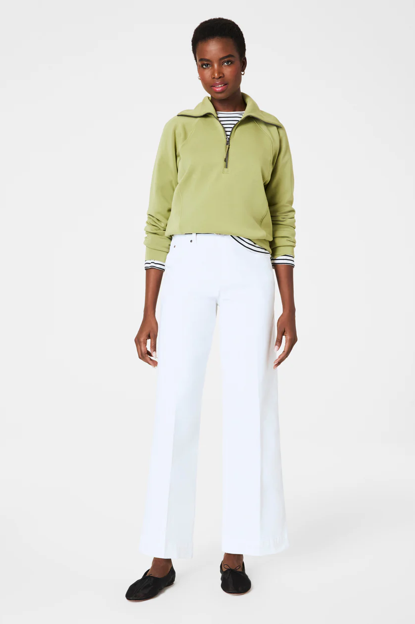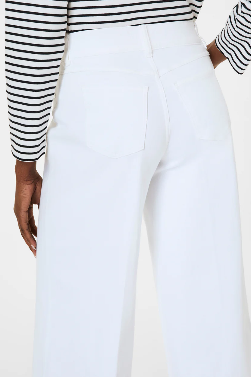 Crafted from premium, 4-way stretch denim designed to hug your curves, these jeans are engineered with built-in targeted SPANX TummyTamer Tech™ that shapes your waist. Plus, with a cropped wide leg silhouette and high waist design, they elongate the leg and celebrate your figure. All you have to do is pull them on: no zippers, a faux button front, and faux front pockets (so no bulk!). This is denim done right.