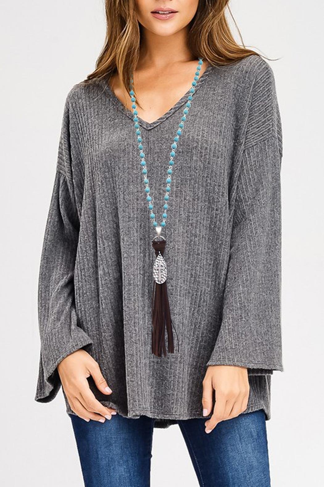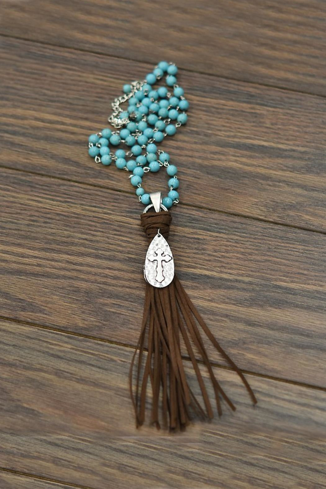 Cross-Pendant-Tassel Faux Turquoise-Necklace