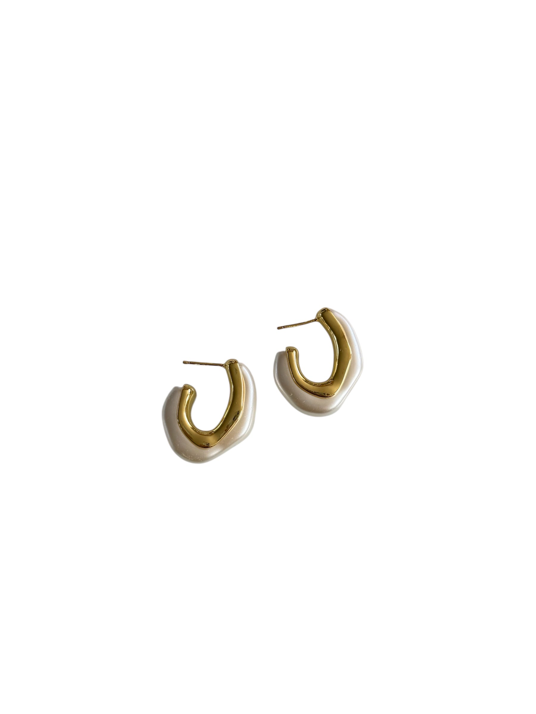 Experience the stunning elegance of our Pearl with Gold Earrings. The luminous pearl outer layer perfectly complements the shimmering gold line, creating a truly gorgeous piece. Add a touch of sophistication and class to any outfit with these earrings. Perfect for any occasion!