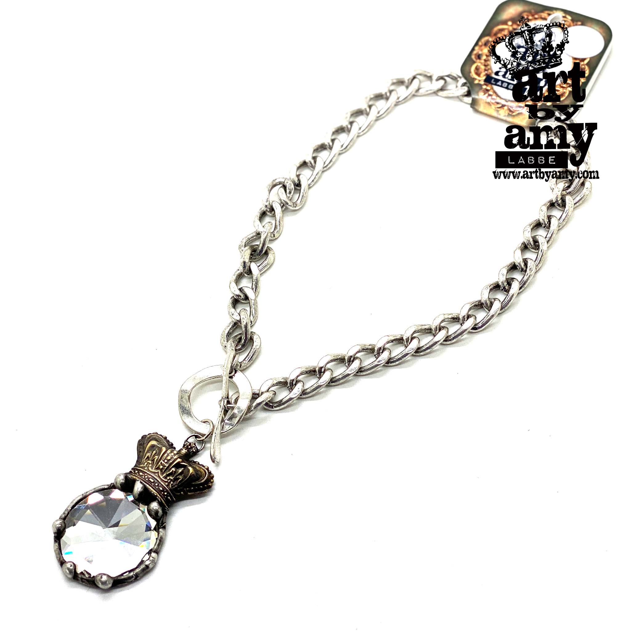A beautiful crystal hanging from a bronze crown with silver 21" toggle chain. Catch everyone's eye in this beauty!