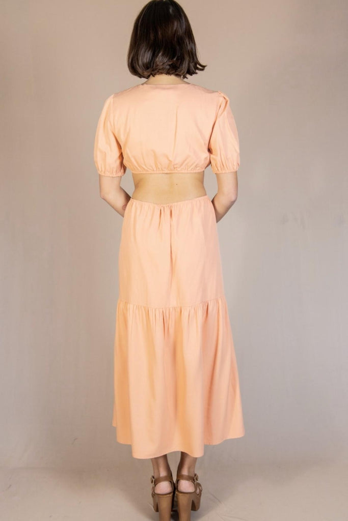 Cut out dress with open back. Model is wearing a size Small