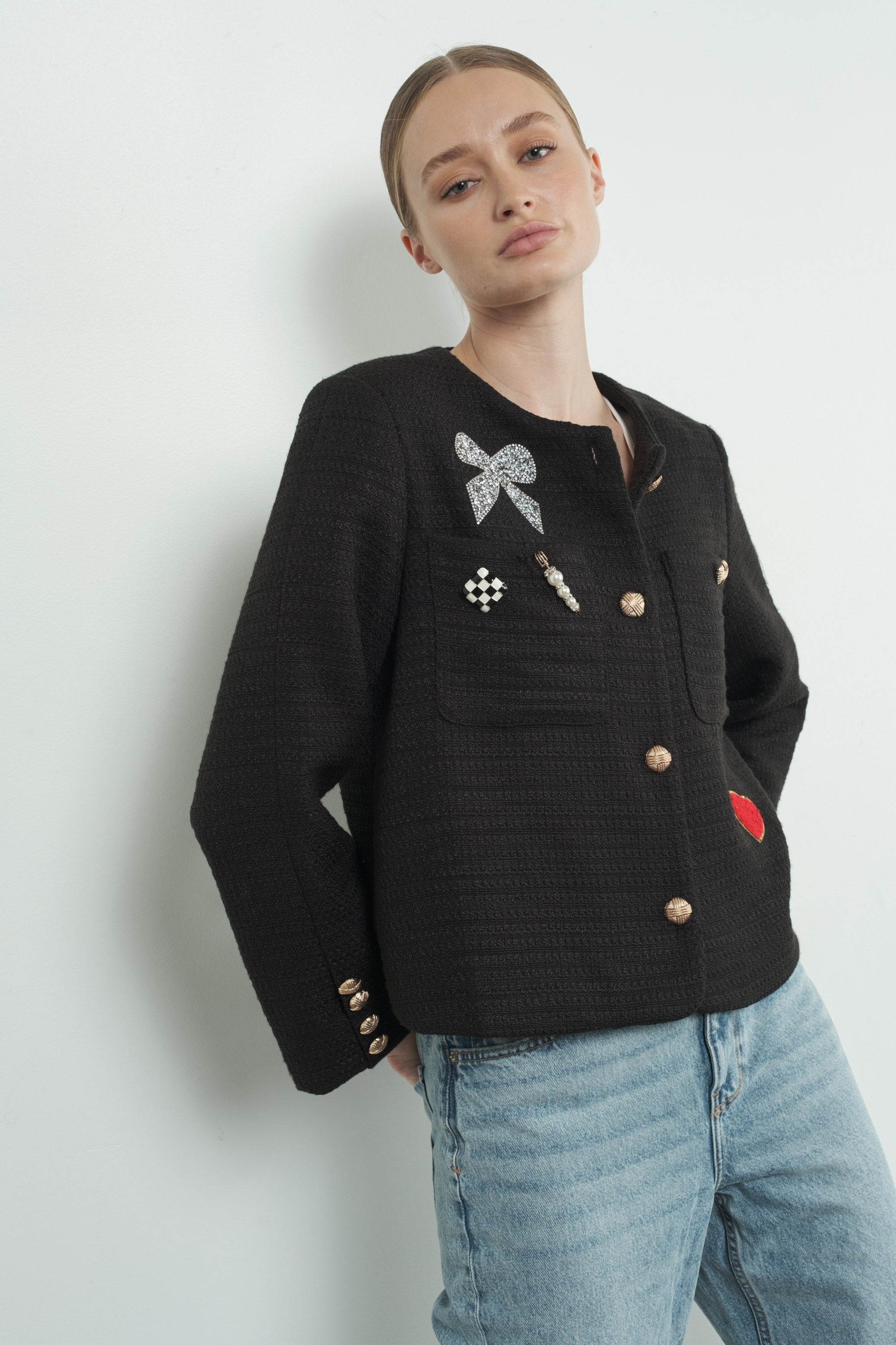 Cute Patch Tweed Jacket