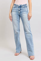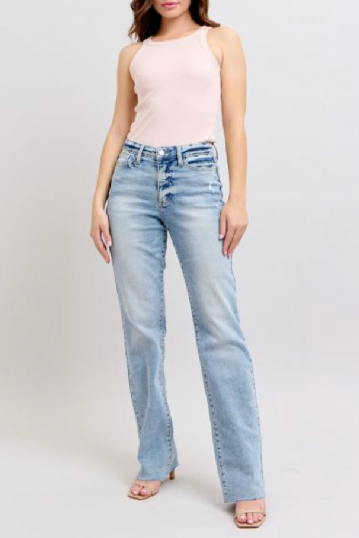 Mid Rise Light Wash Dad Jean. Famous Judy Blue Stretch. 5 pocket design.