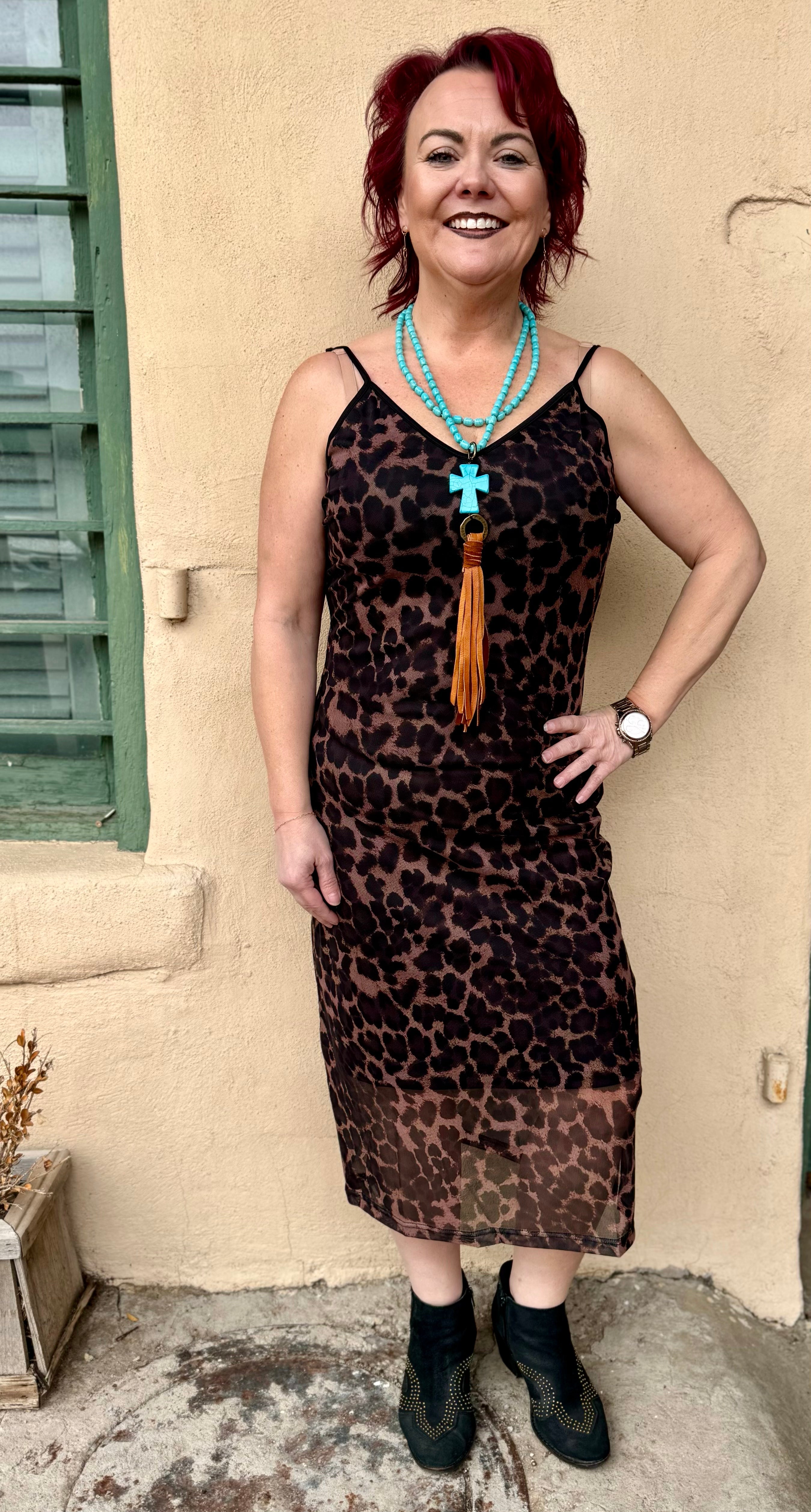 Turn heads in our Dakota Dark π Mesh Bodycon Dress! With adjustable straps and a silky, form-fitting mesh that's barely there, you'll feel effortlessly fabulous. Plus, the lining keeps you comfortable and chic. Perfect for a boho western vibe!