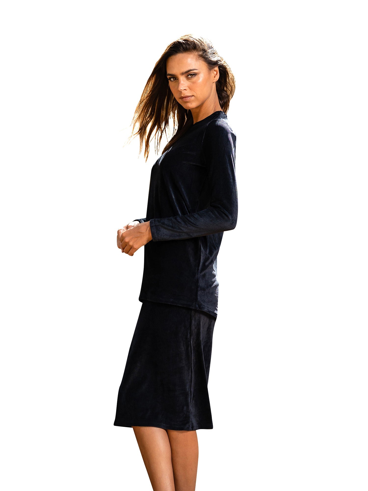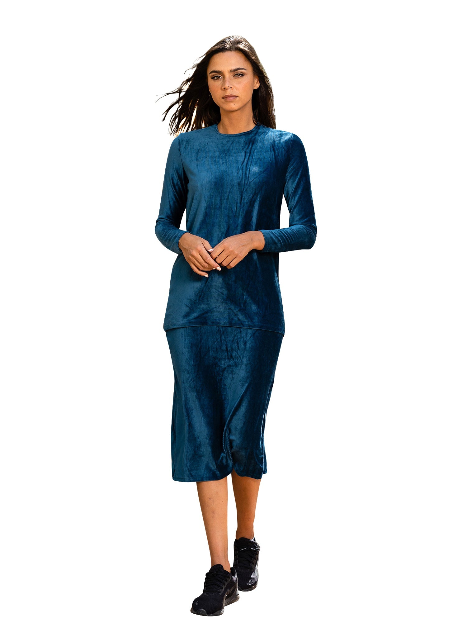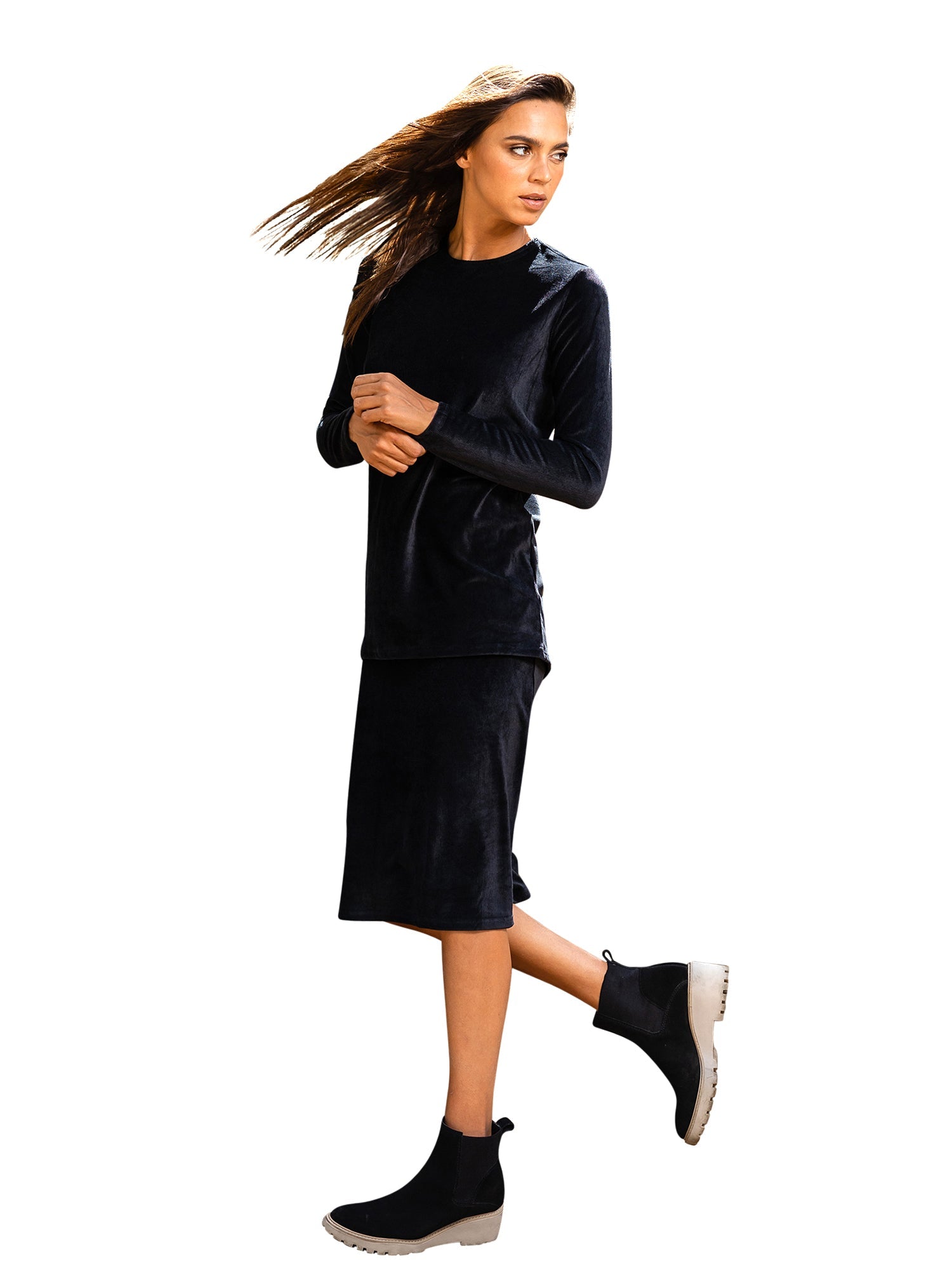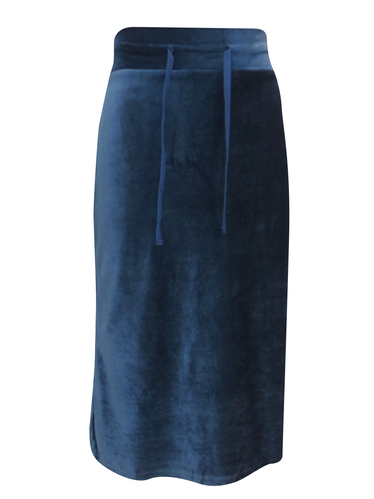 So soft and luxurious, our fine-ribbed velour pencil skirt feels like loungewear but it is so easy to dress up! Featuring a smooth drawstring waist, this silky velour skirt will take you from errands to a night out in no time!