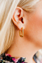 The Danielle hoop is a glossy gold, 25mm waterproof, hoop perfect for everyday wear.