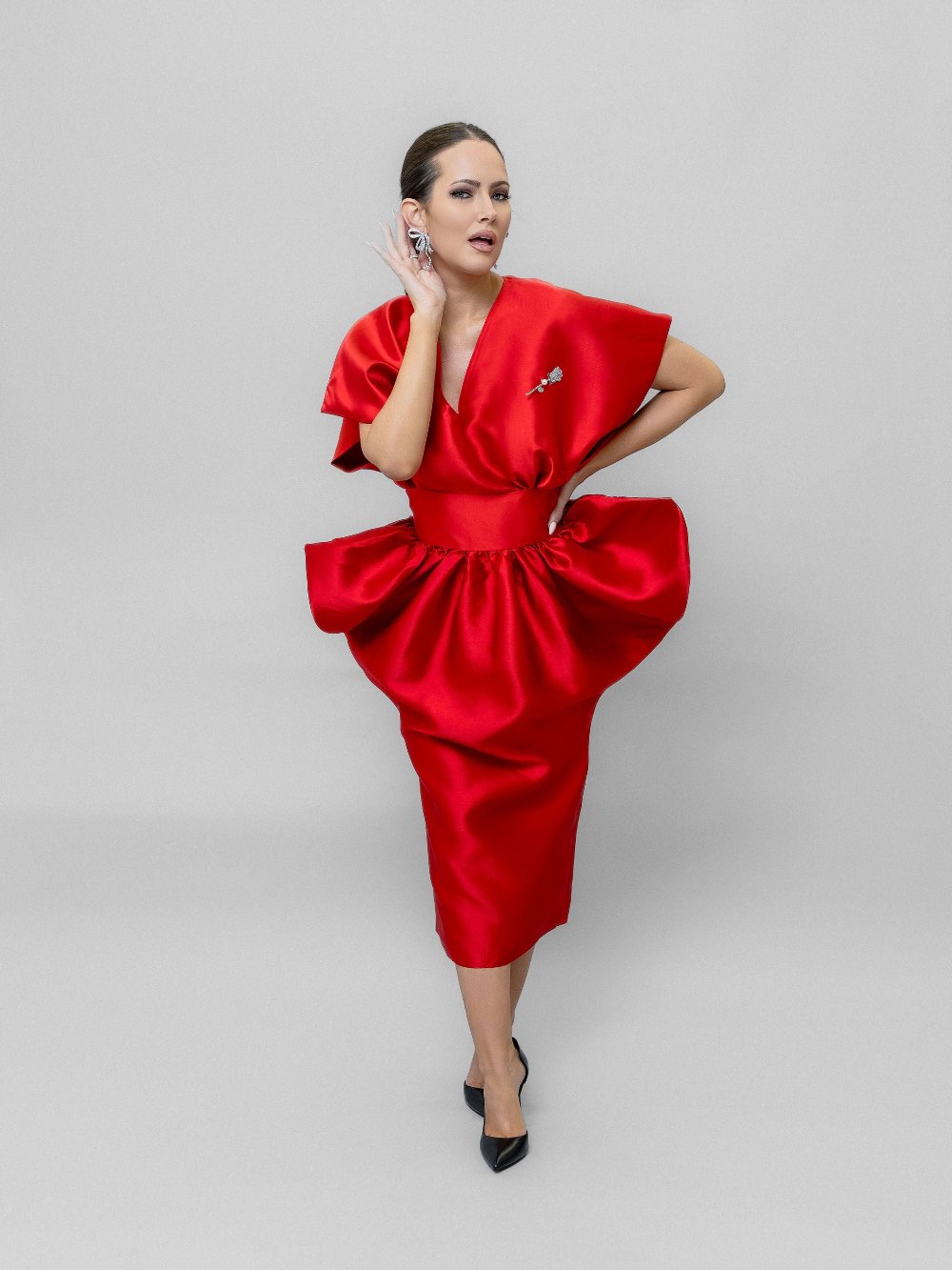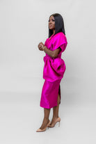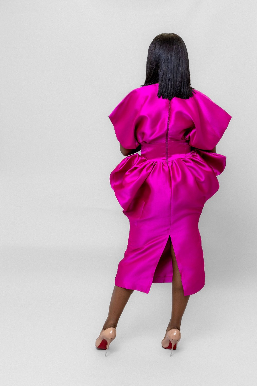 Get ready to turn heads in the Daphne Dress! This lovely cocktail dress is form fitting, accentuating your curves in all the right places. The flirty peplum-like bottom adds an extra touch of elegance and style. Perfect for any special occasion, this dress will have you feeling confident and chic! For detailed measurement please refer to our size guide or email/Call - modchiccouture@gmail.com / 8329257491. You can also send us DM on IG or F
