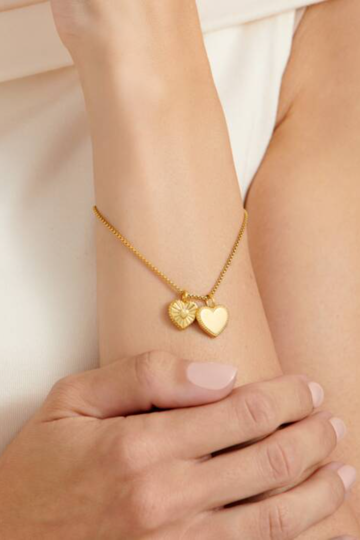Certified waterproof, our 'Daughter' Waterproof Gold Charm Bracelet has been designed in durable 18K Gold PVD Coating - meaning it is waterproof, sweat-proof and life-proof - and holds two heart-shaped charms.