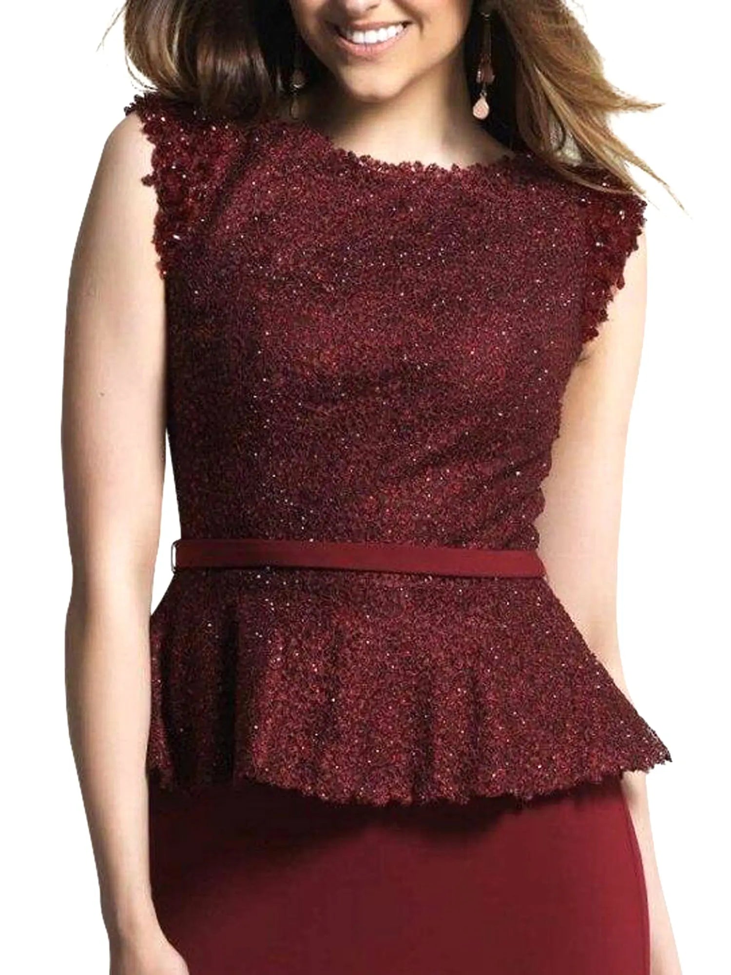Dave and Johnny Refined Lace Peplum Evening Dress