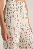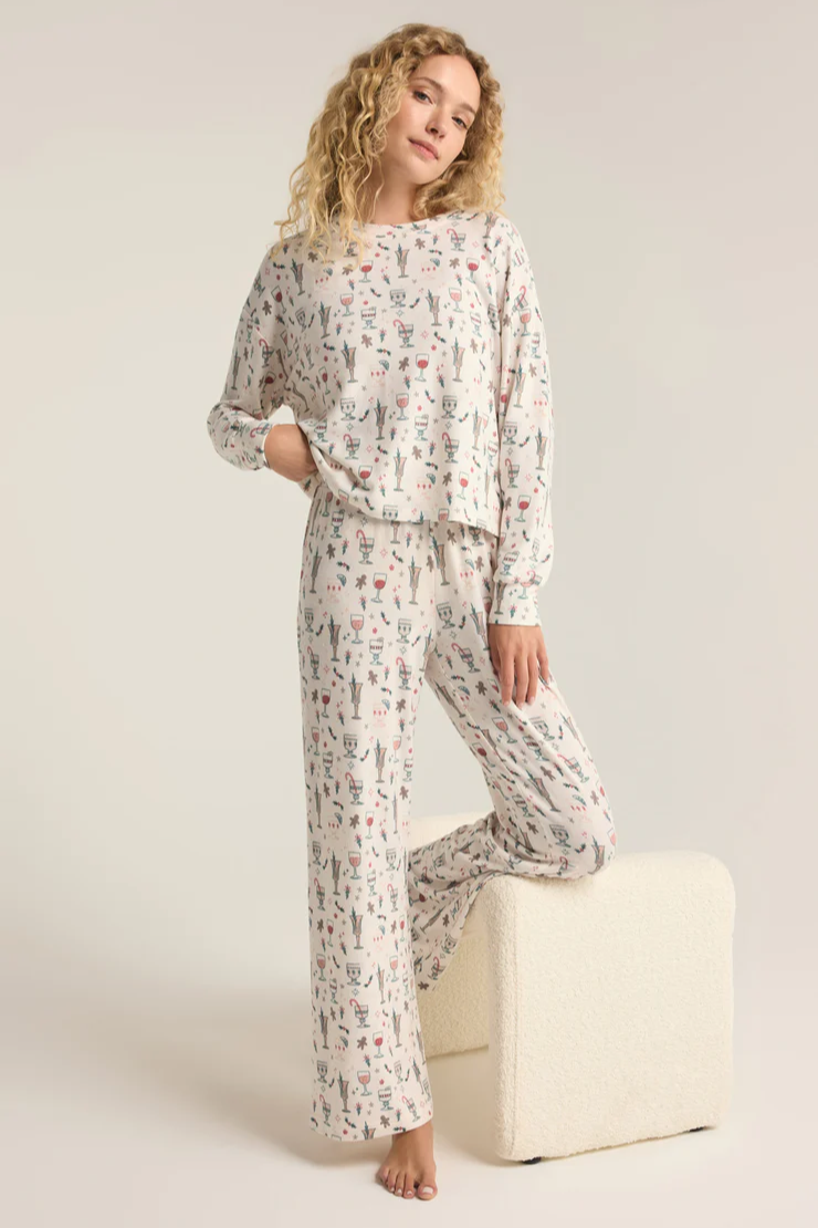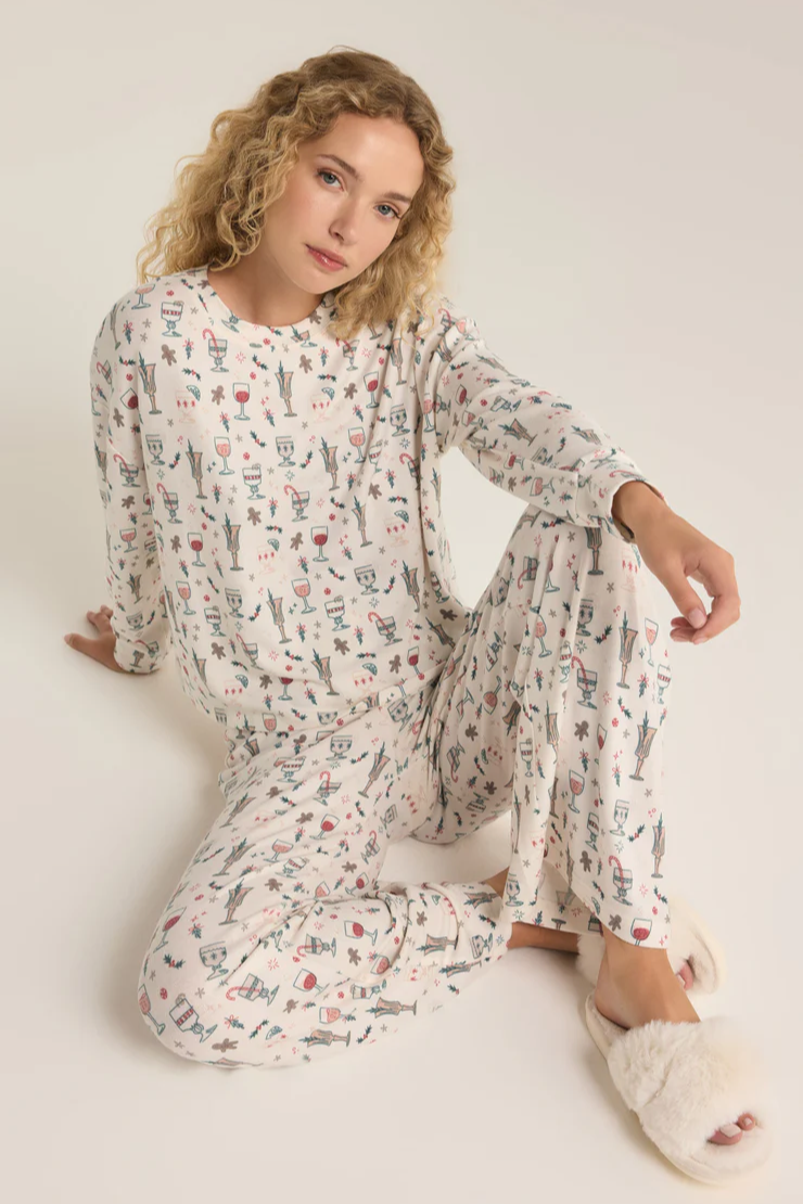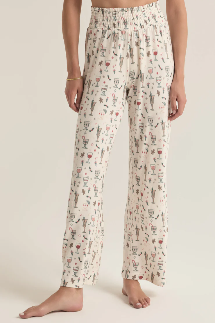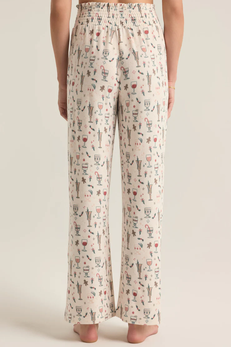 Slip into holiday fun with this brushed knit pant, featuring a festive vintage cocktail print and a comfy, tapered fit. The elastic waistband and matching top make them the ultimate stay-at-home outfit.