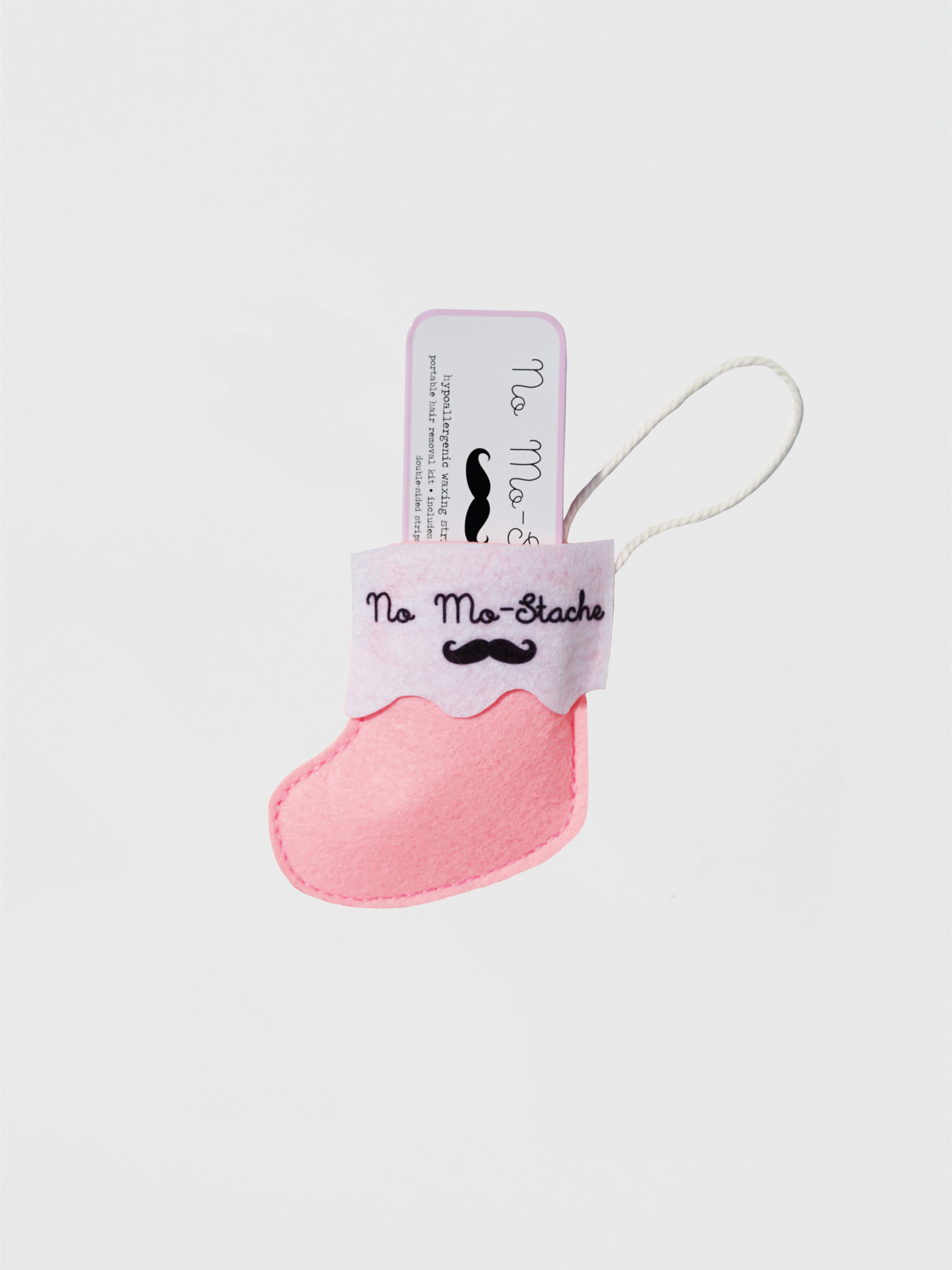 Decorate Mo with our mini stocking/ornament set, and spread the holiday cheer with the gift of smooth skin by using our 24 ct No Mo-Stache hypoallergenic lip wax strips. Perfect on-the-go lip wax kit that can clean up any peach fuzz around the face!
